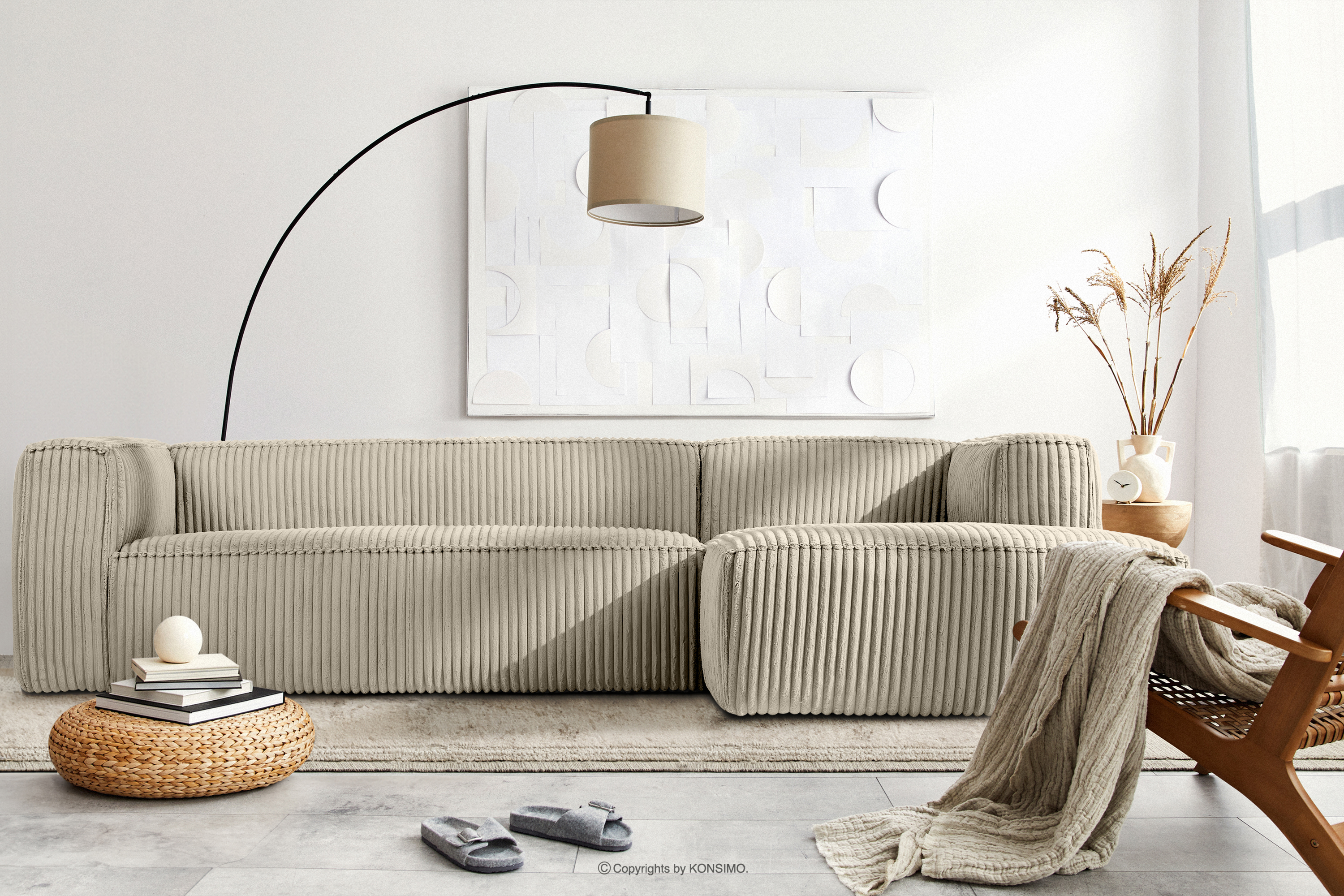 FEROX zobacz całą kolekcję Duży beżowy narożnik w tkaninie sztruks prawy- kolor beżowy