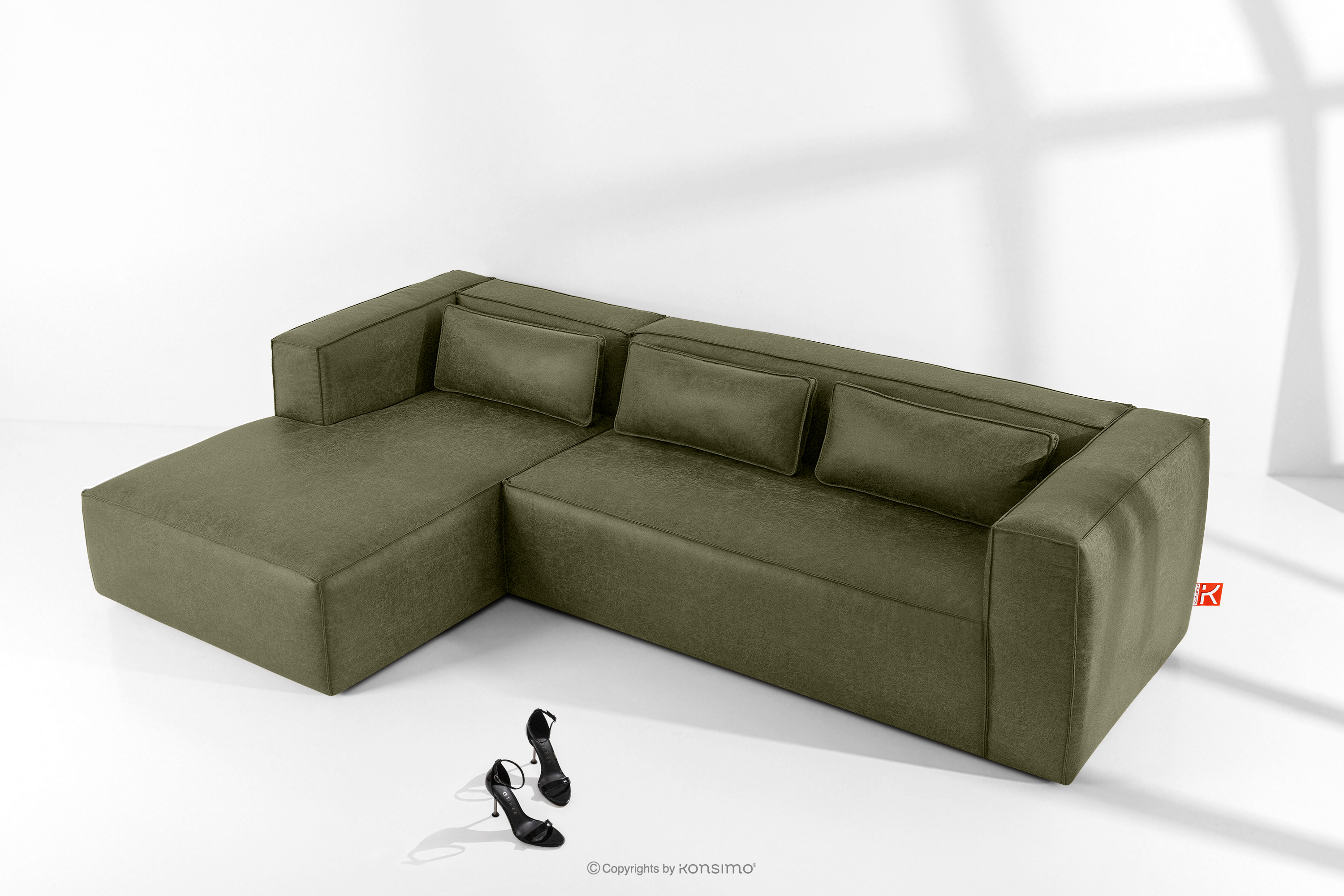 dla produktu Narożnik w stylu loft tkanina skóropodobna zielony lewy