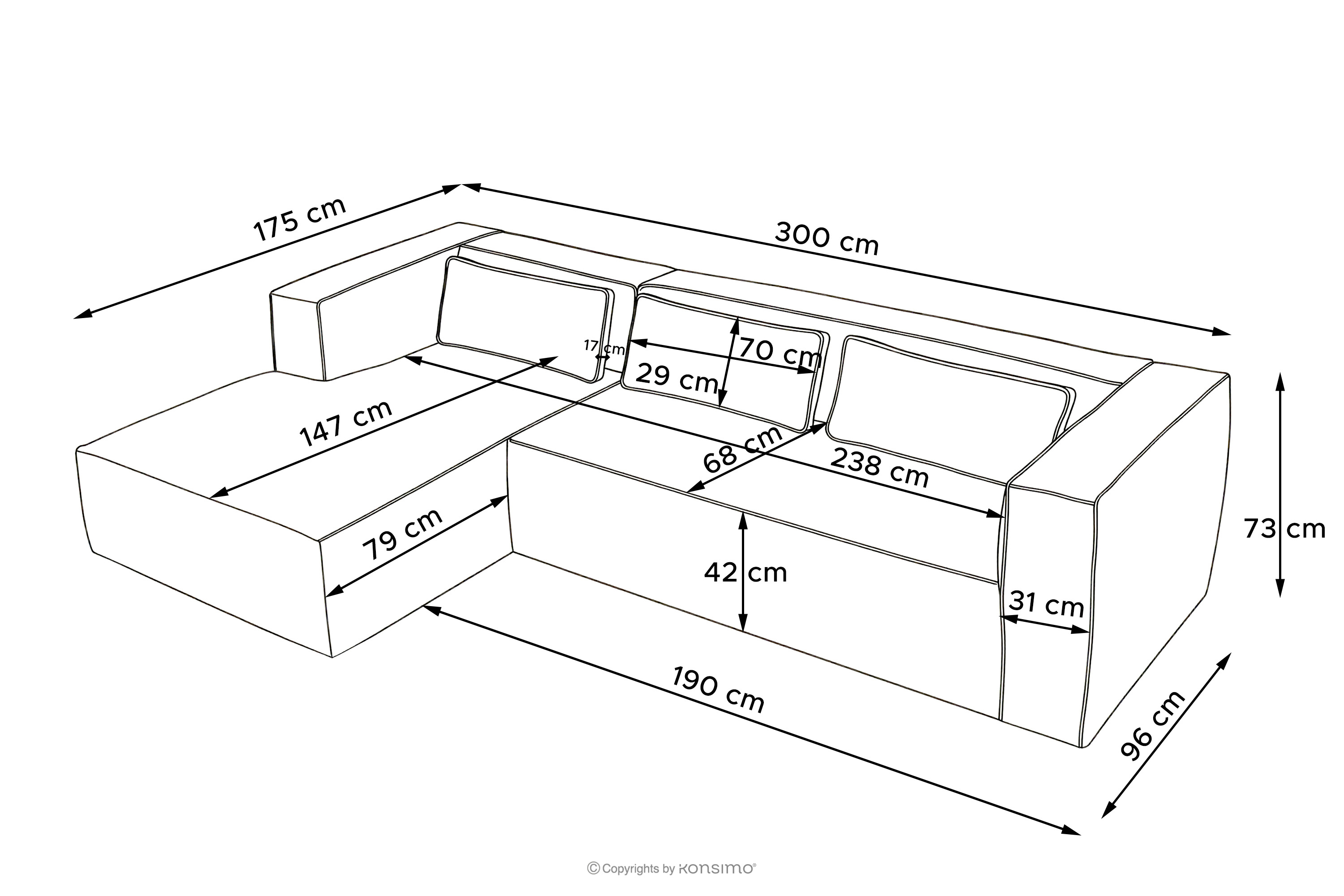 • 300x73x175/96 cm