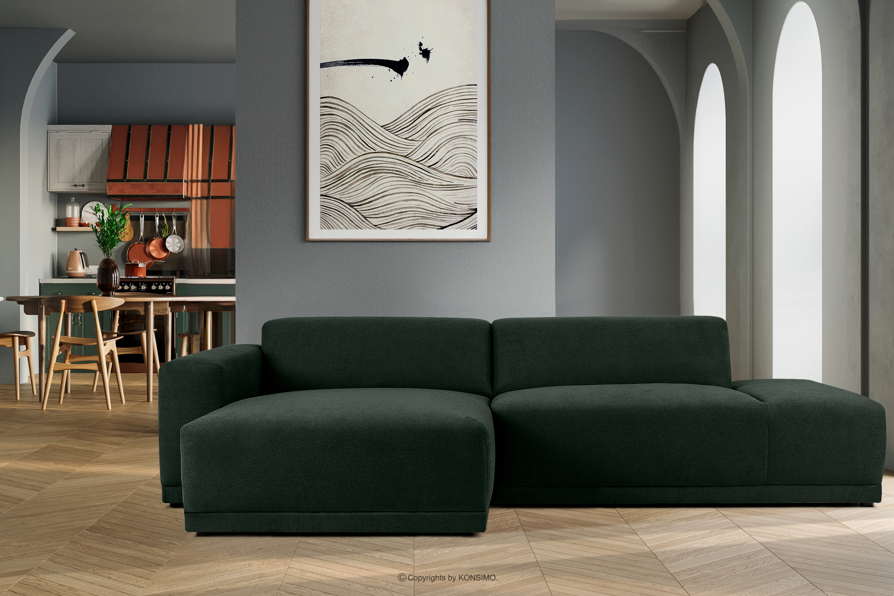 MUDI zobacz całą kolekcję Nowoczesny narożnik do salonu ciemny zielony tkanina pleciona lewy- kolor ciemny zielony