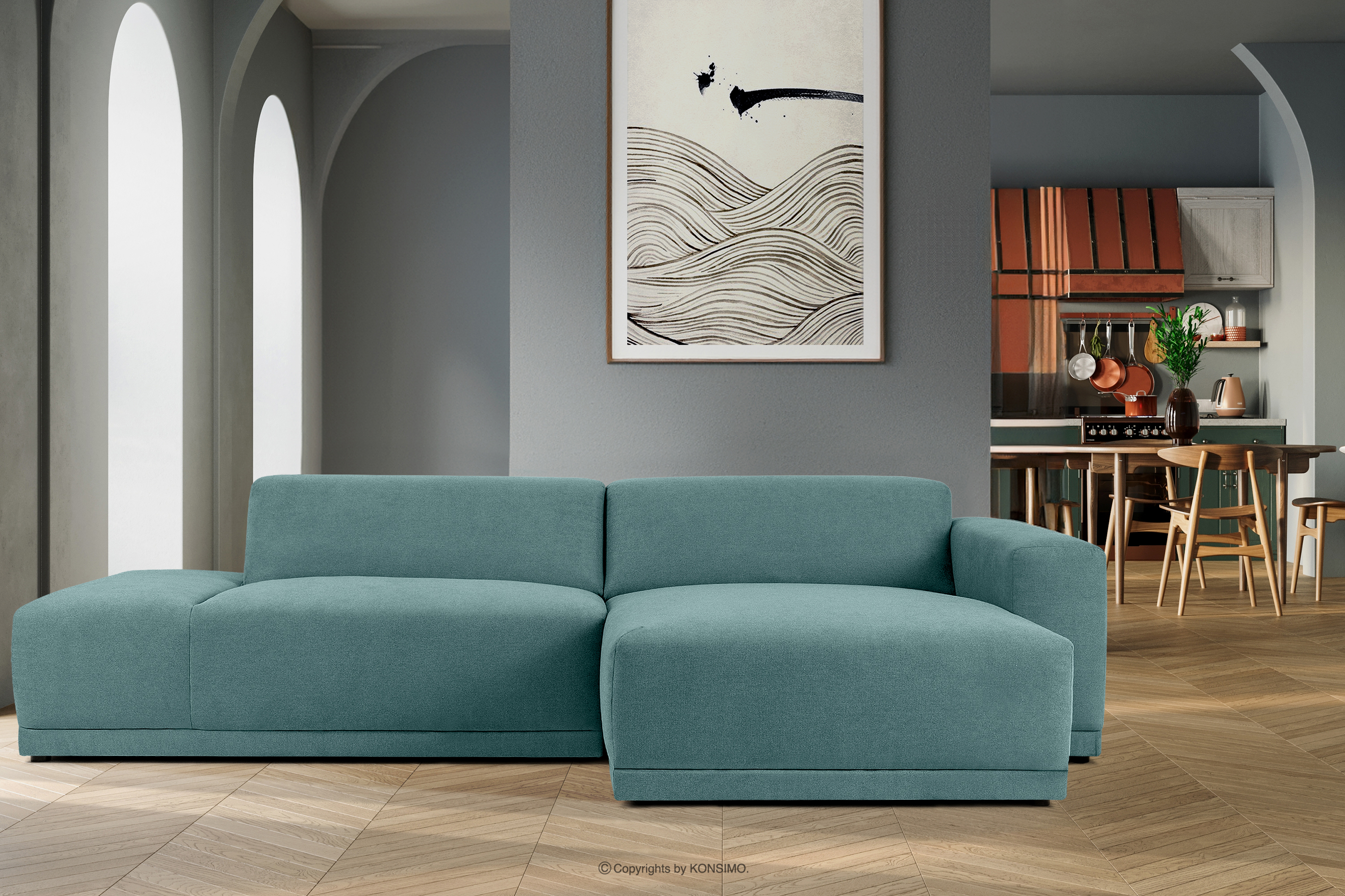 MUDI zobacz całą kolekcję Nowoczesny narożnik do salonu błękitny tkanina pleciona prawy- kolor błękitny