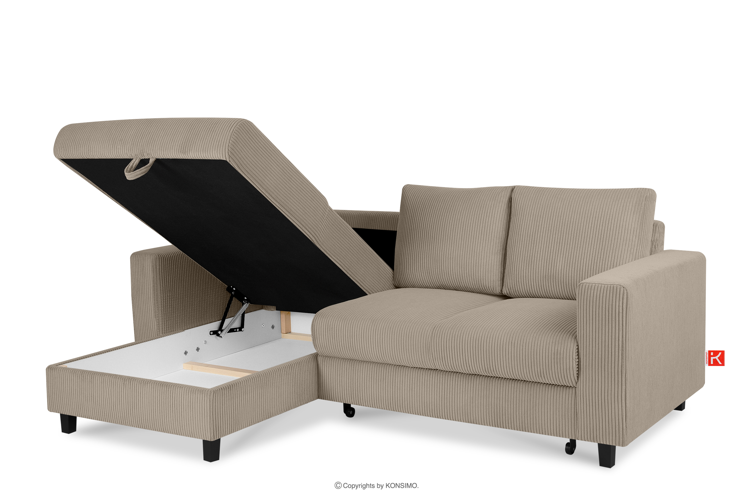 EGRET Rozkładany narożnik na nóżkach w sztruksie beżowy lewy