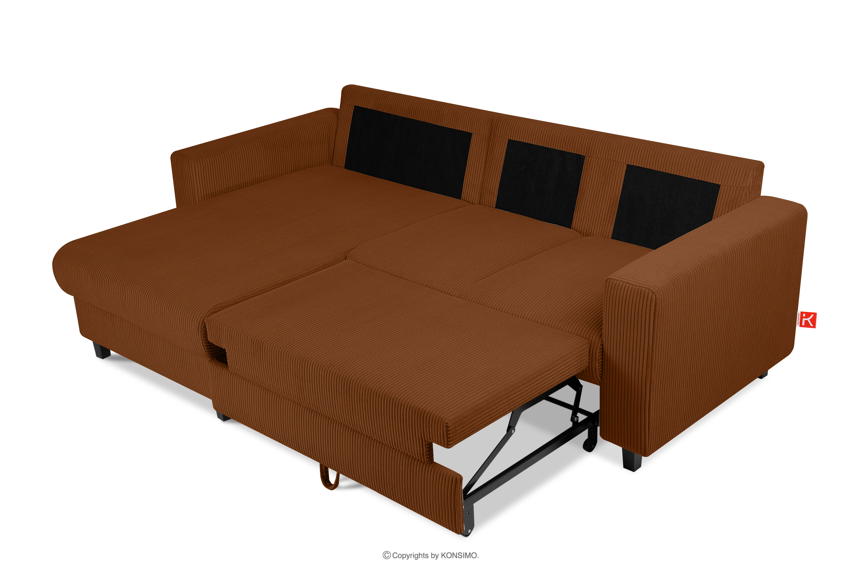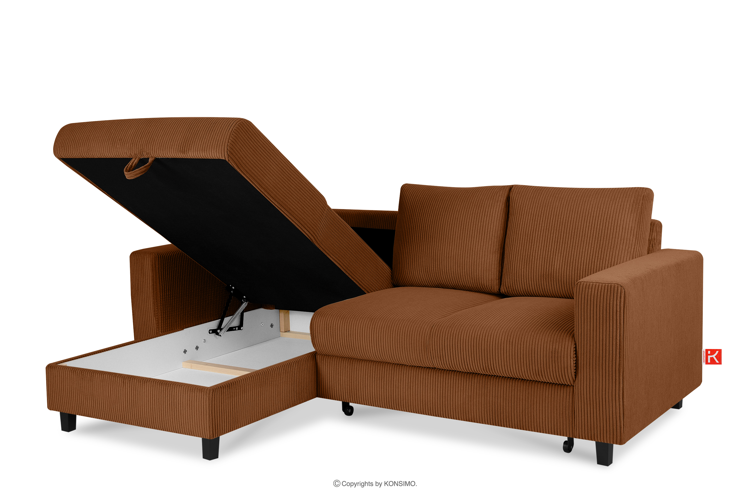EGRET Rozkładany narożnik na nóżkach w sztruksie rudy lewy