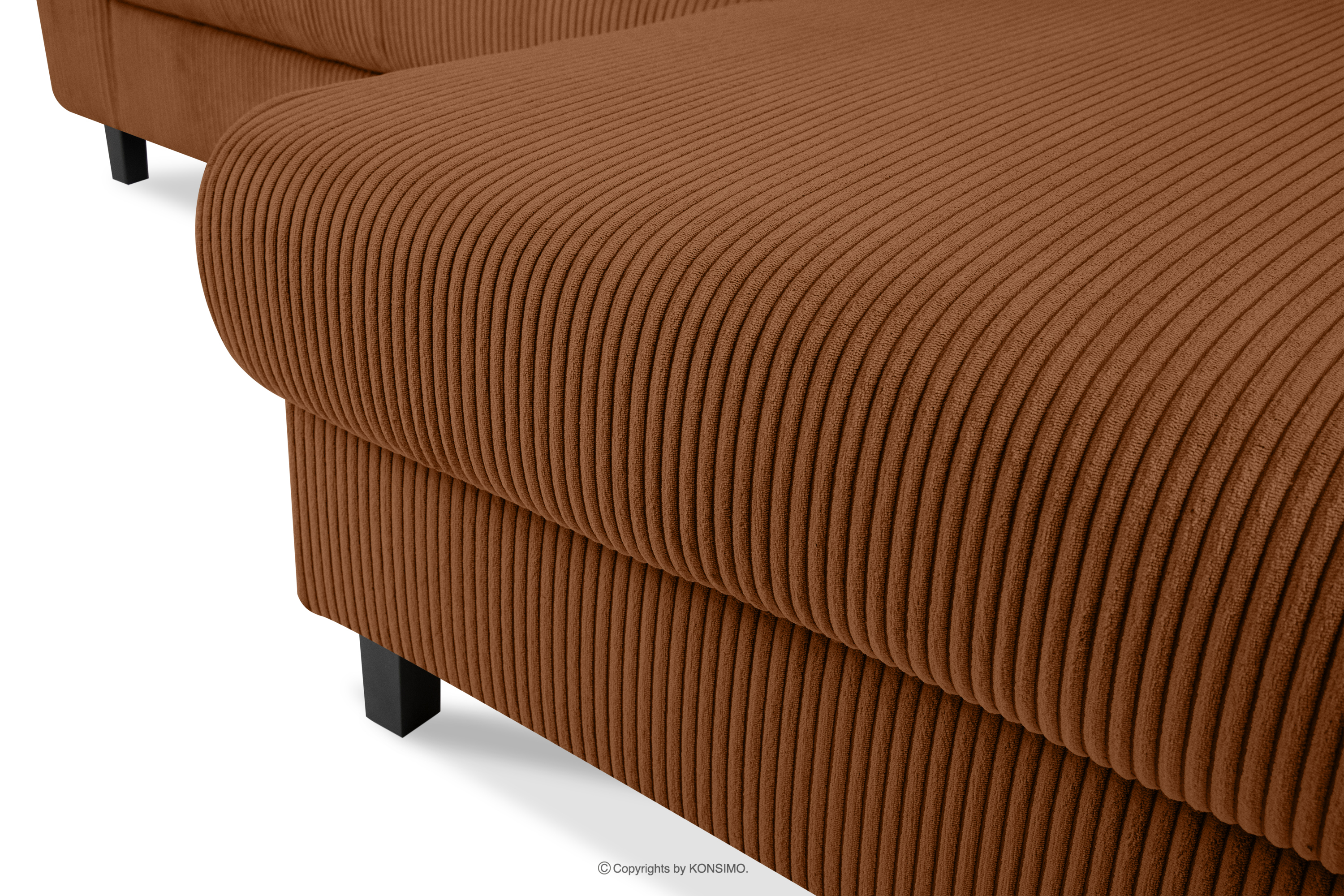 Rozkładany narożnik na nóżkach w sztruksie rudy lewy EGRET - kolor rudy