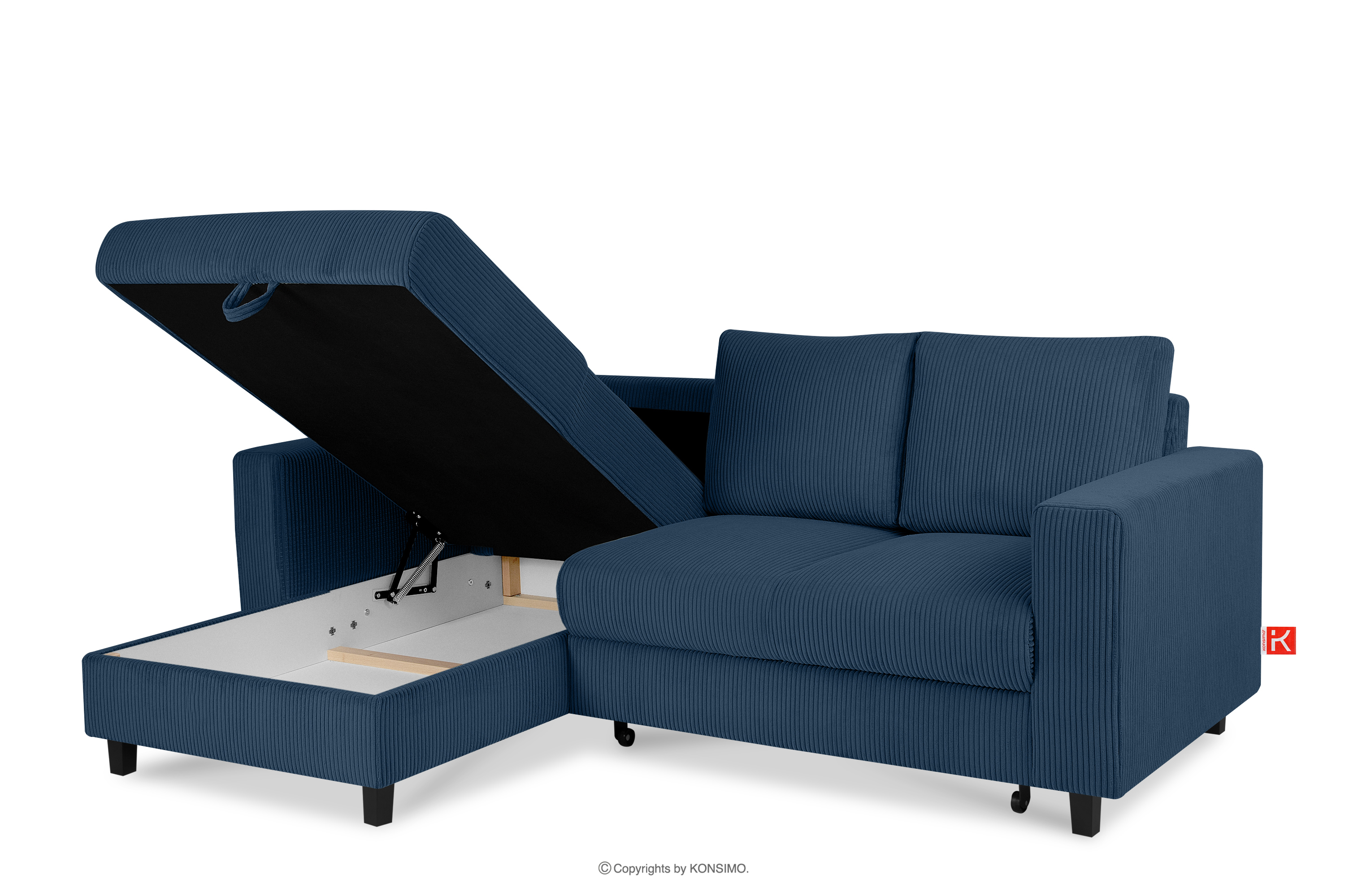 EGRET zobacz całą kolekcję Rozkładany narożnik na nóżkach w sztruksie granatowy lewy- kolor granatowy