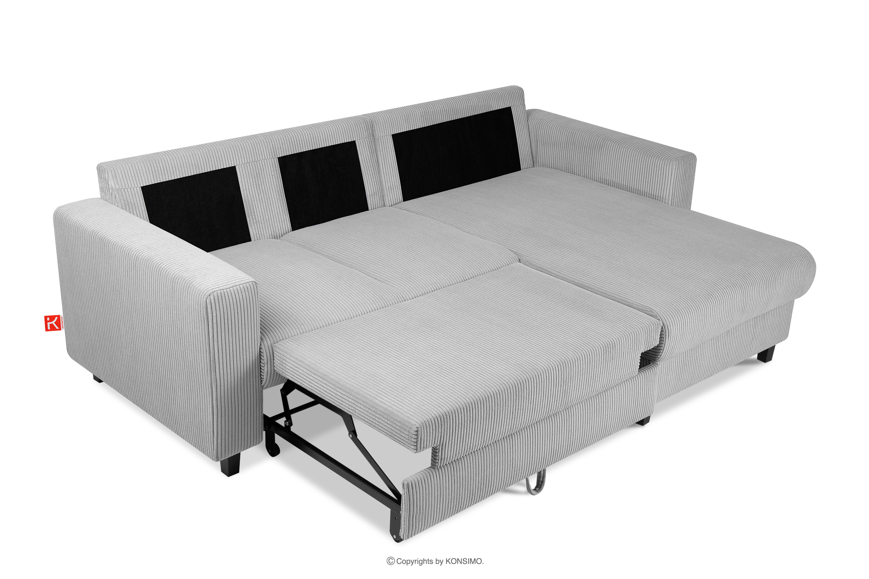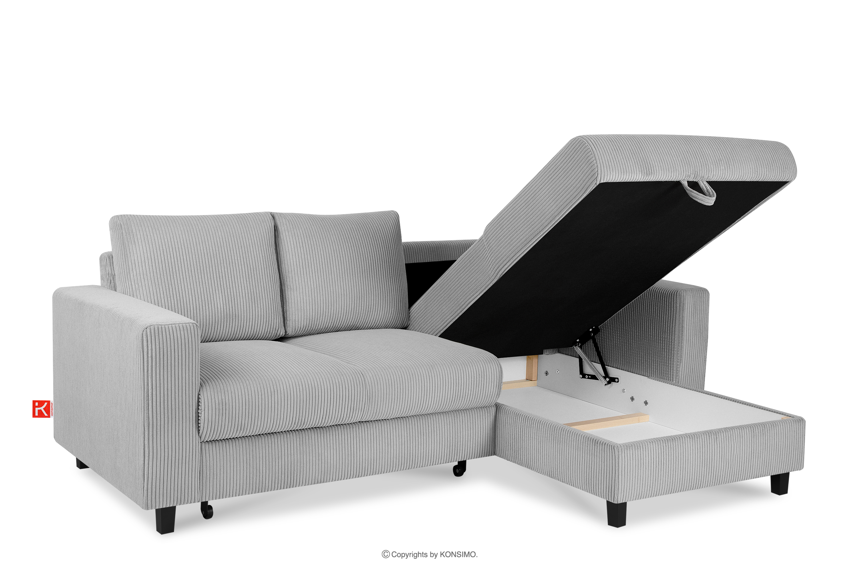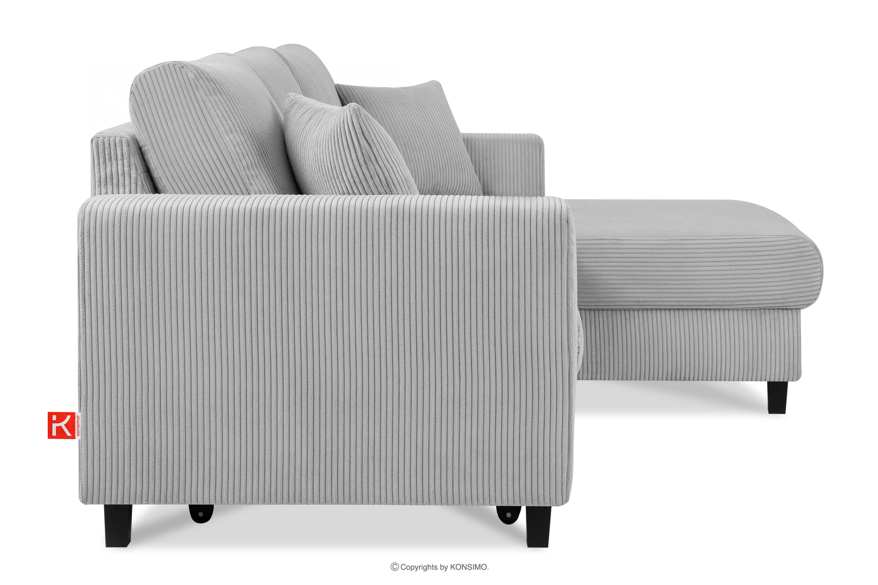 EGRET zobacz całą kolekcję Rozkładany narożnik na nóżkach w sztruksie jasny szary prawy- kolor jasny szary