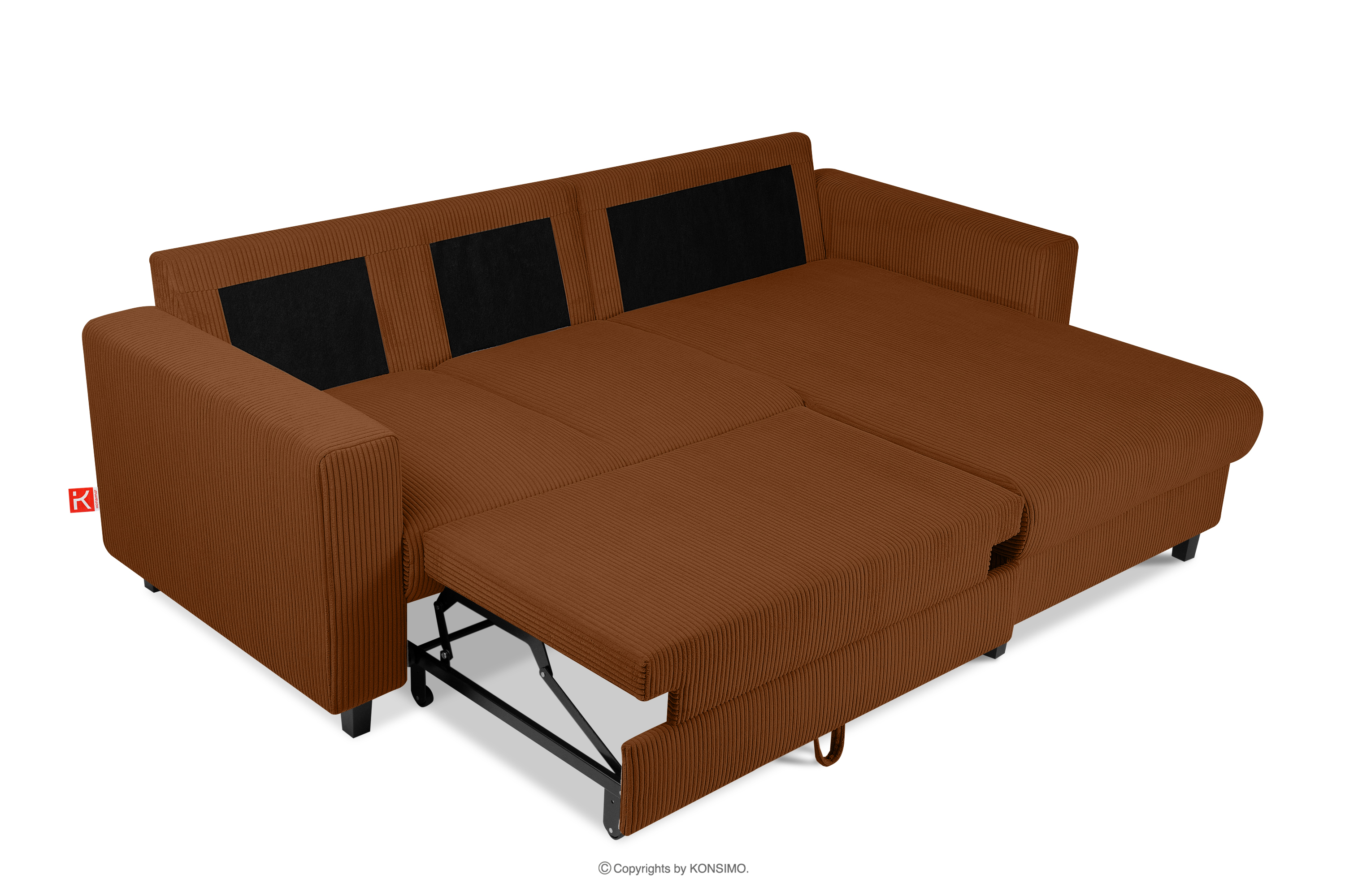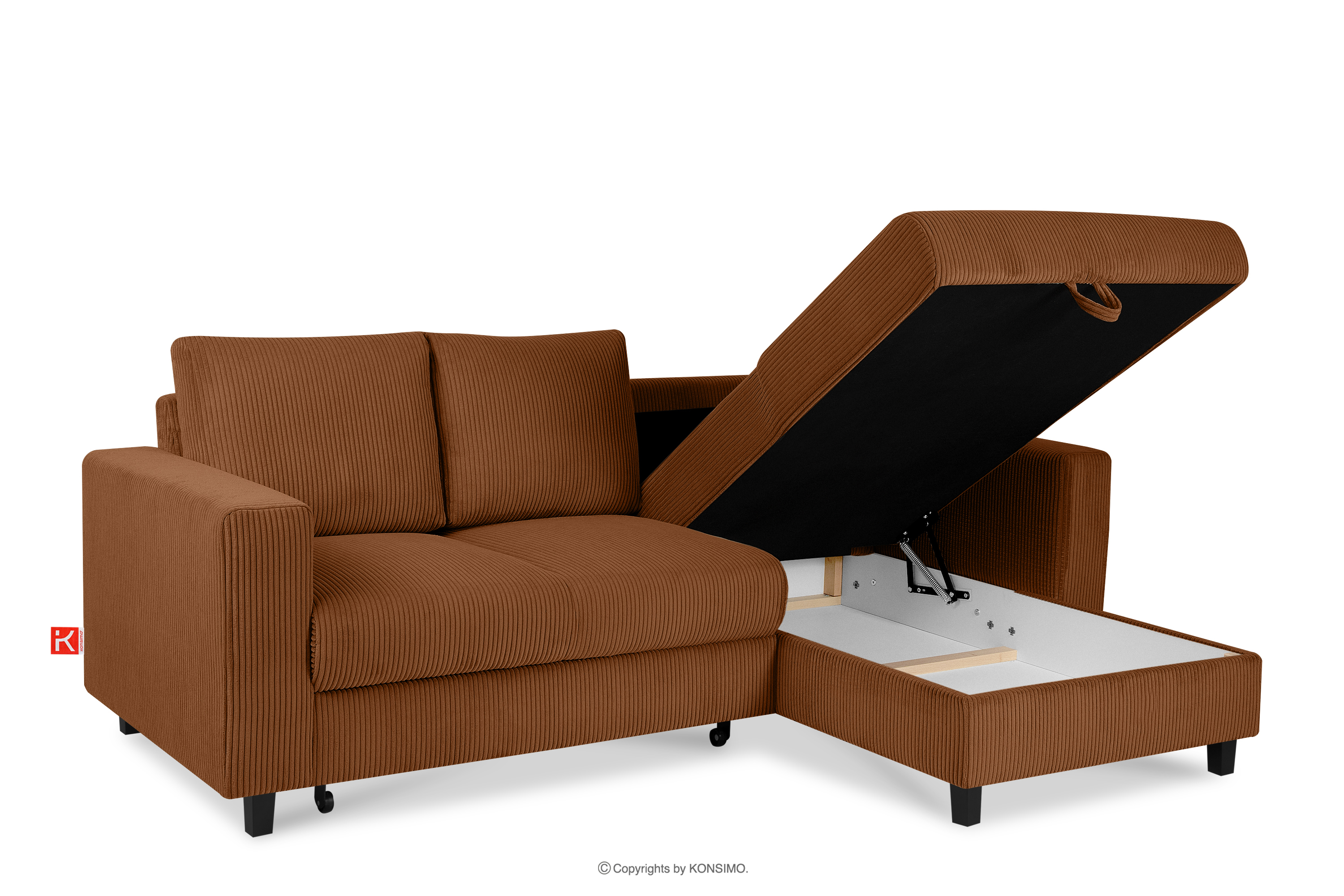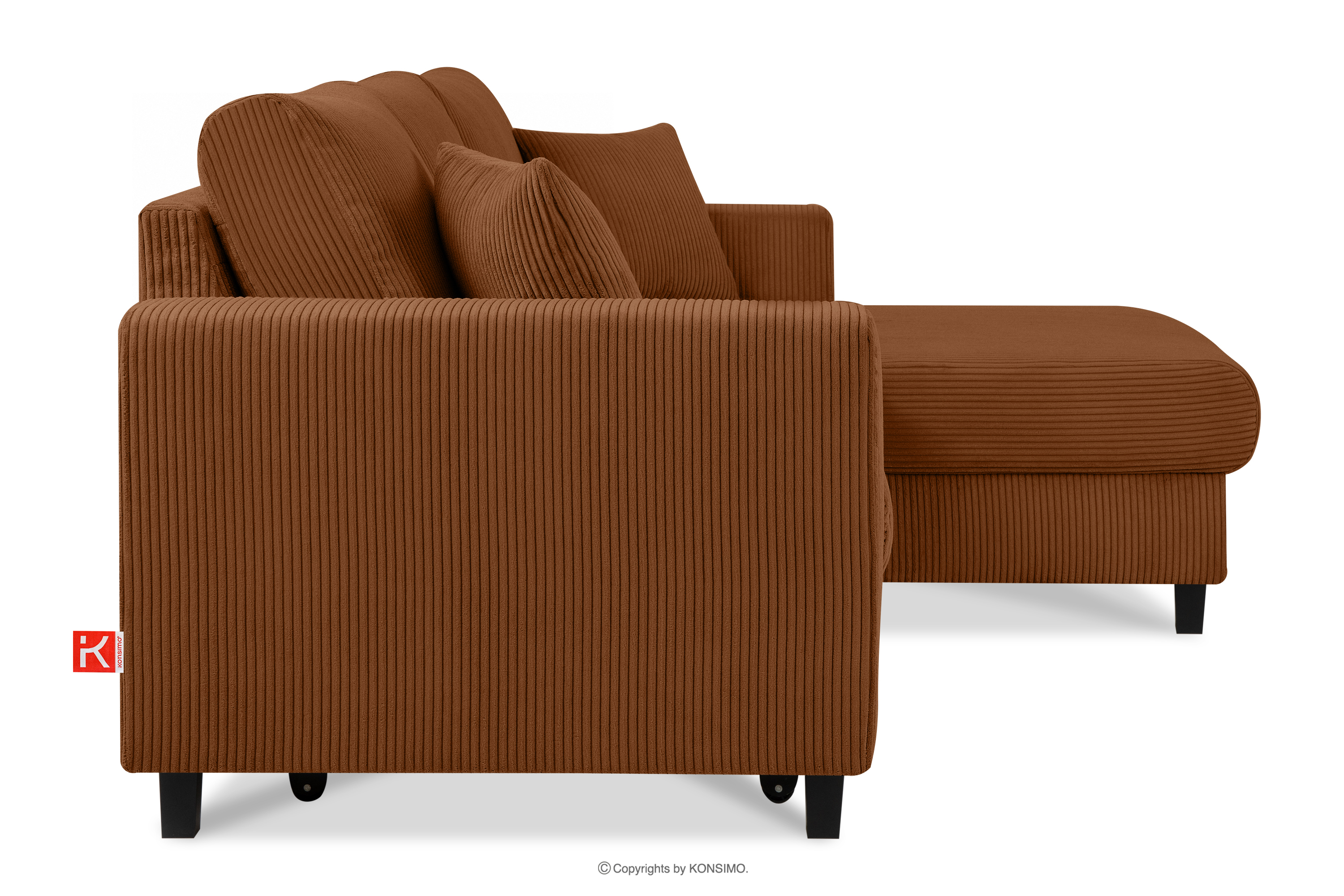 EGRET Rozkładany narożnik na nóżkach w sztruksie rudy prawy