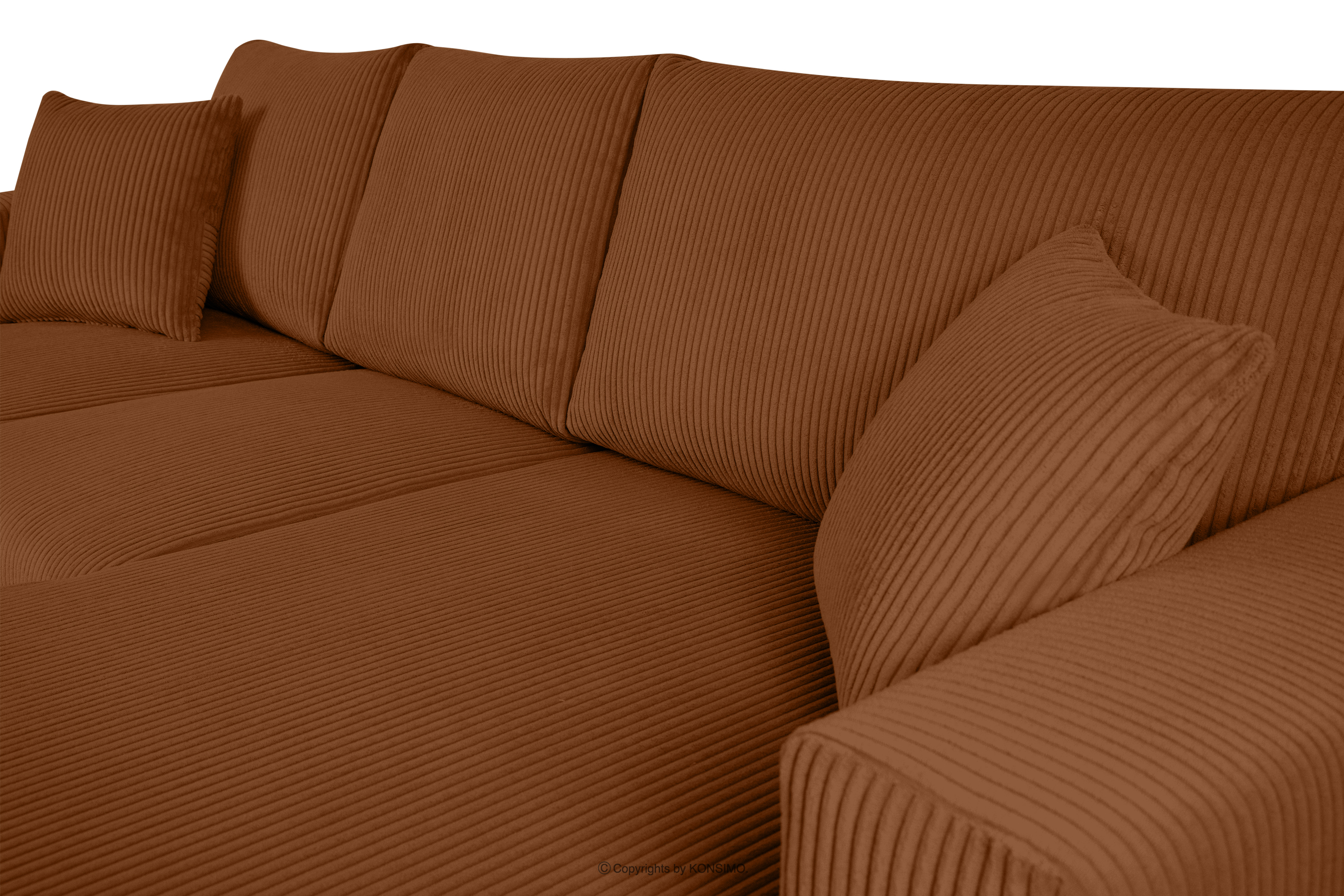 Rozkładany narożnik na nóżkach w sztruksie rudy prawy EGRET - kolor rudy