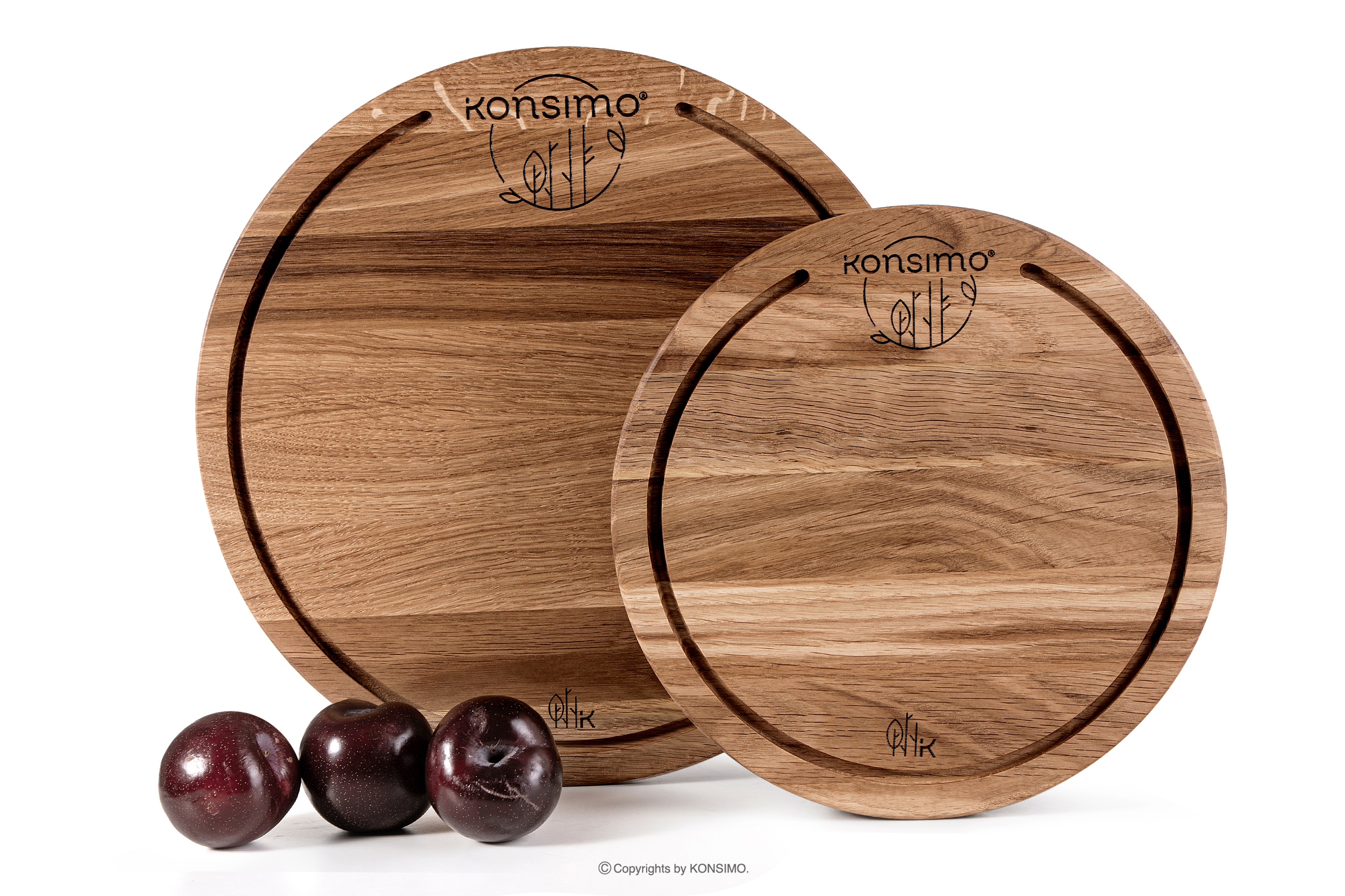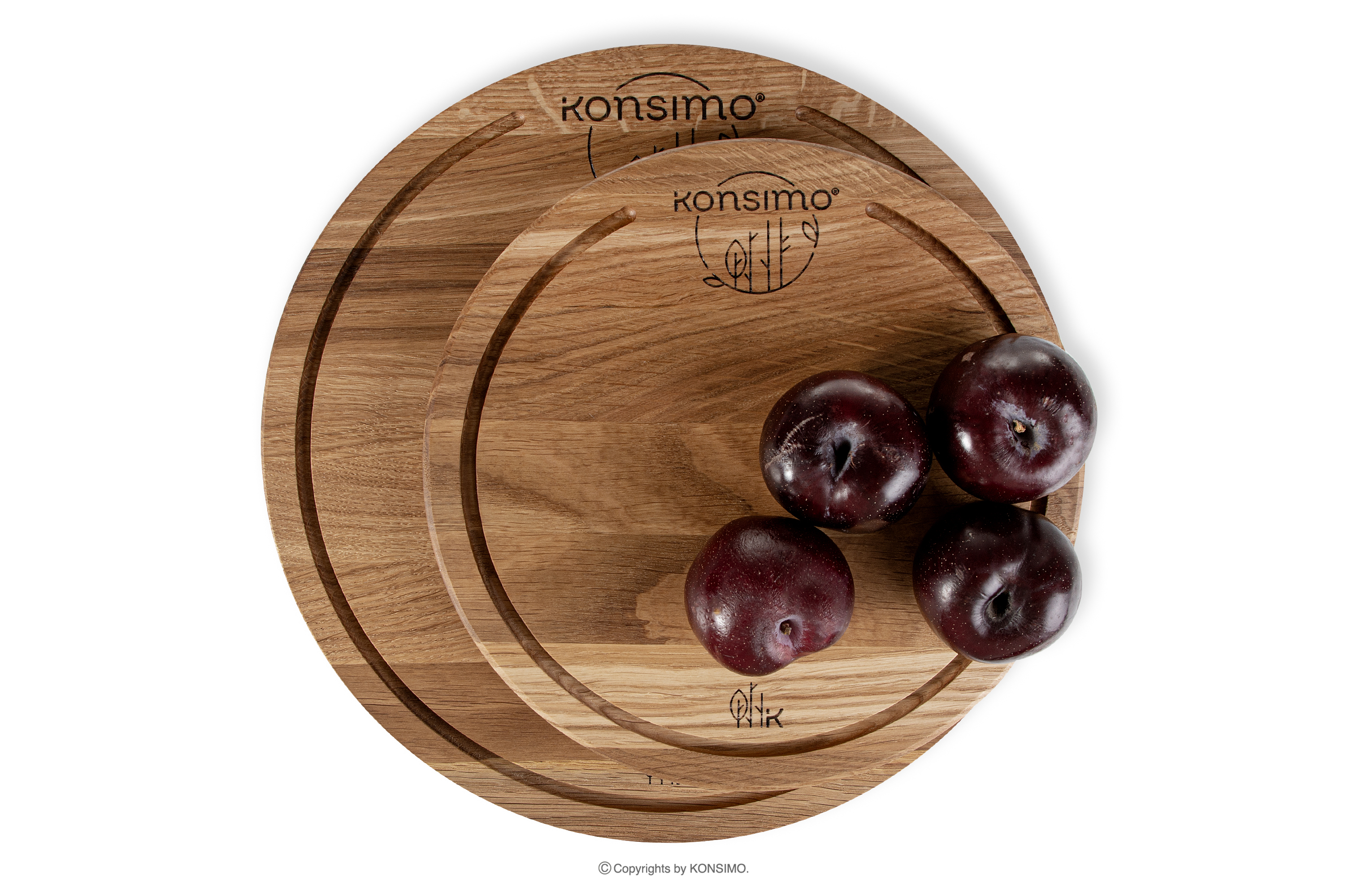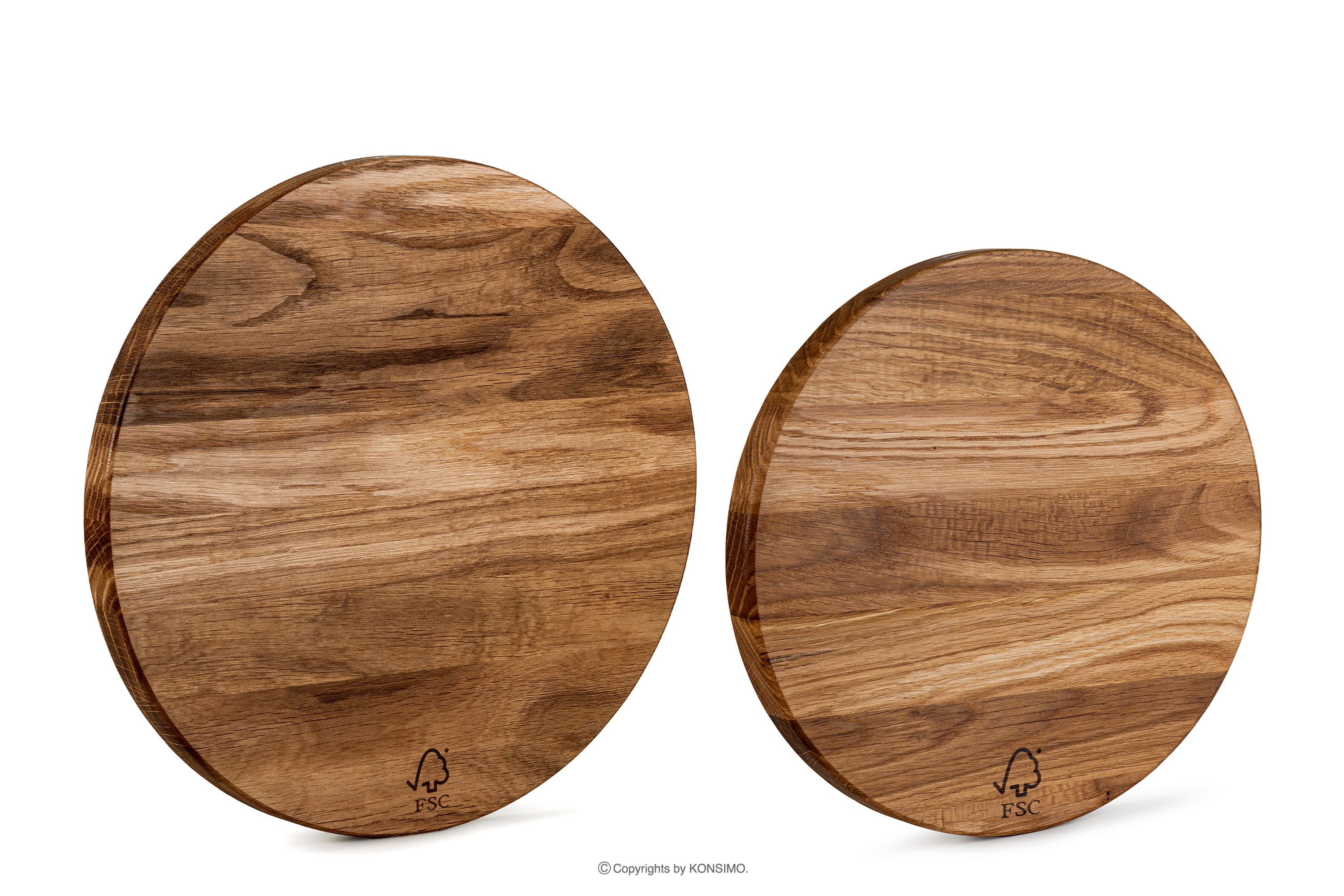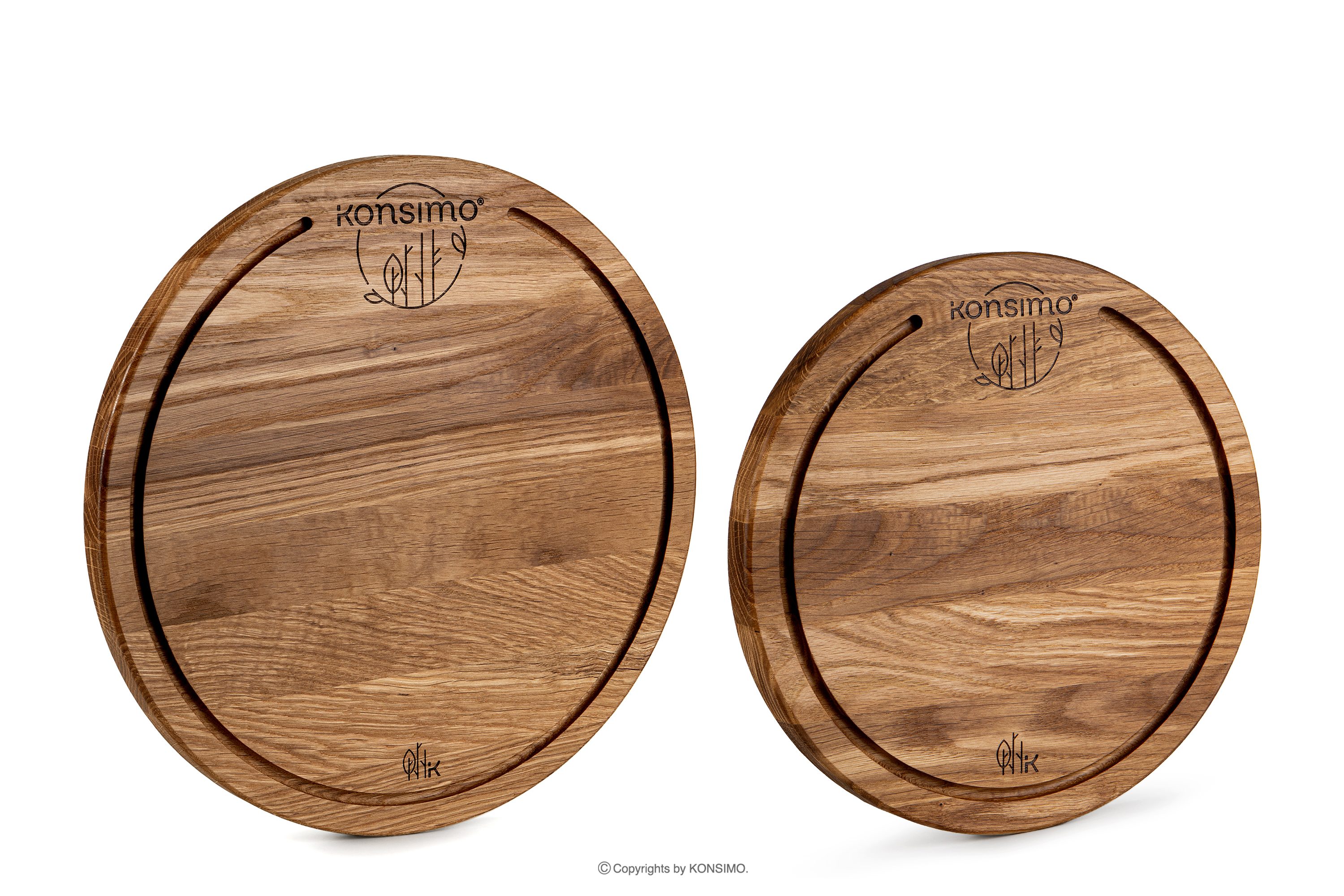 Zestaw desek do krojenia 2szt. drewno dębowe, nie tylko jest praktyczna w użytkowaniu, ale służy także jako designerski dodatek do podawania przekąsek lub dań. Jej okrągły kształt, wykonany z najwyższej jakości drewna dębowego, nadaje elegancji oraz trwałości i wytrzymałości. Dzięki temu doskonale sprawdza się podczas krojenia różnorodnych produktów, nie tępiąc przy tym noży.