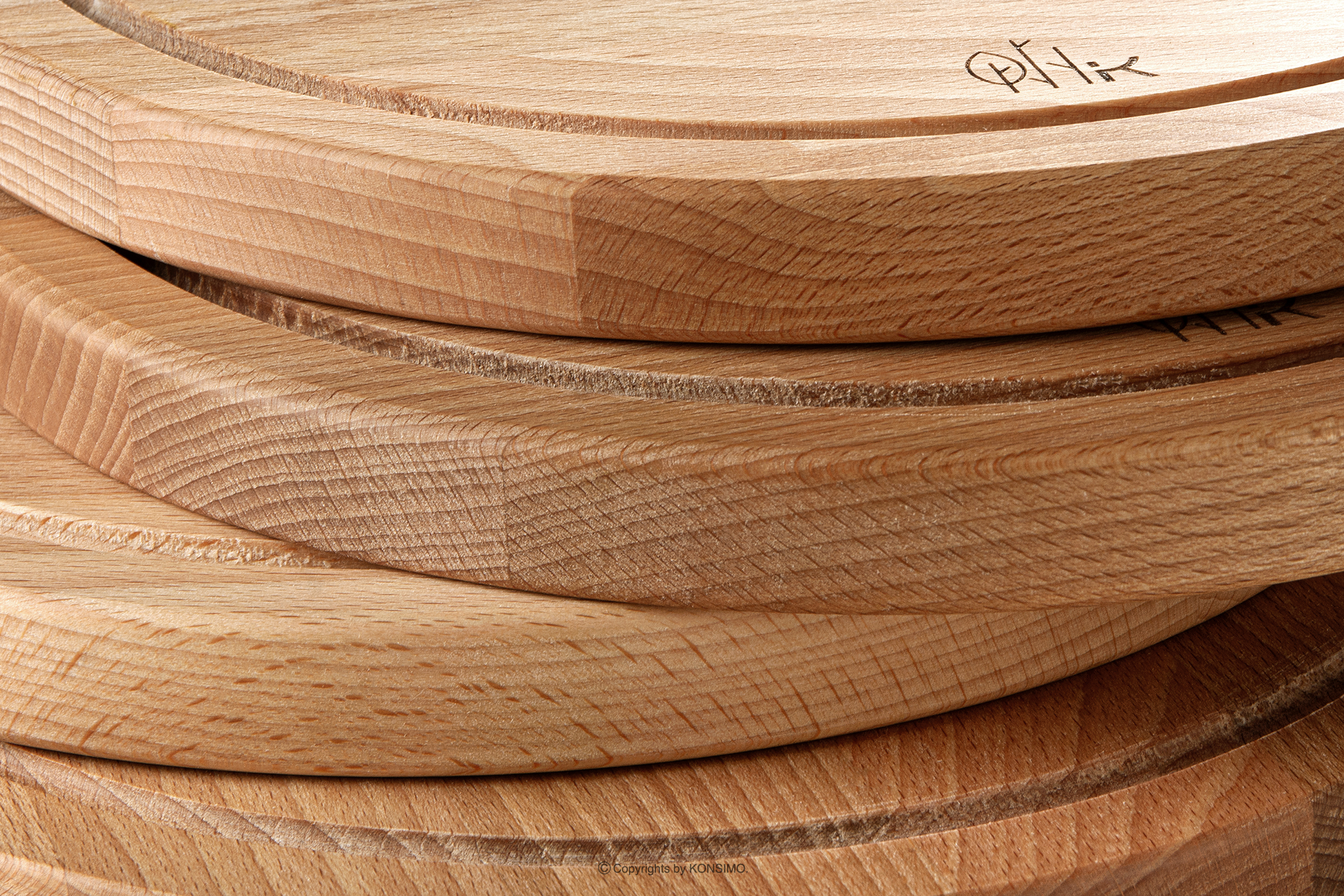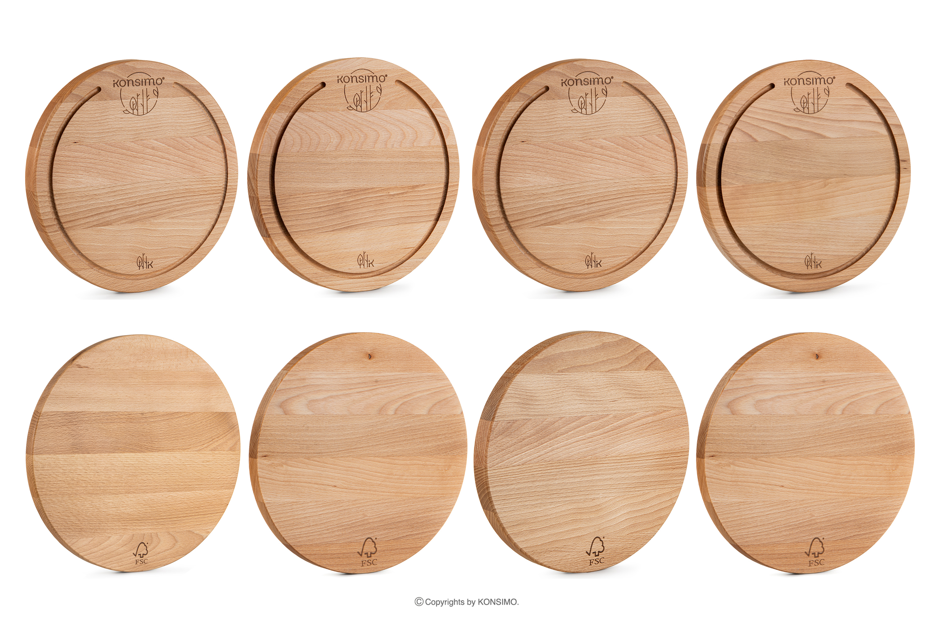 Deski do krojenia 4szt do krojenia ze stojakiem bukowym nie tylko jest praktyczna w użytkowaniu, ale służy także jako designerski dodatek do podawania przekąsek lub dań. Jej okrągły kształt, wykonany z najwyższej jakości drewna bukowego, nadaje elegancji oraz trwałości i wytrzymałości. Dzięki temu doskonale sprawdza się podczas krojenia różnorodnych produktów, nie tępiąc przy tym noży.