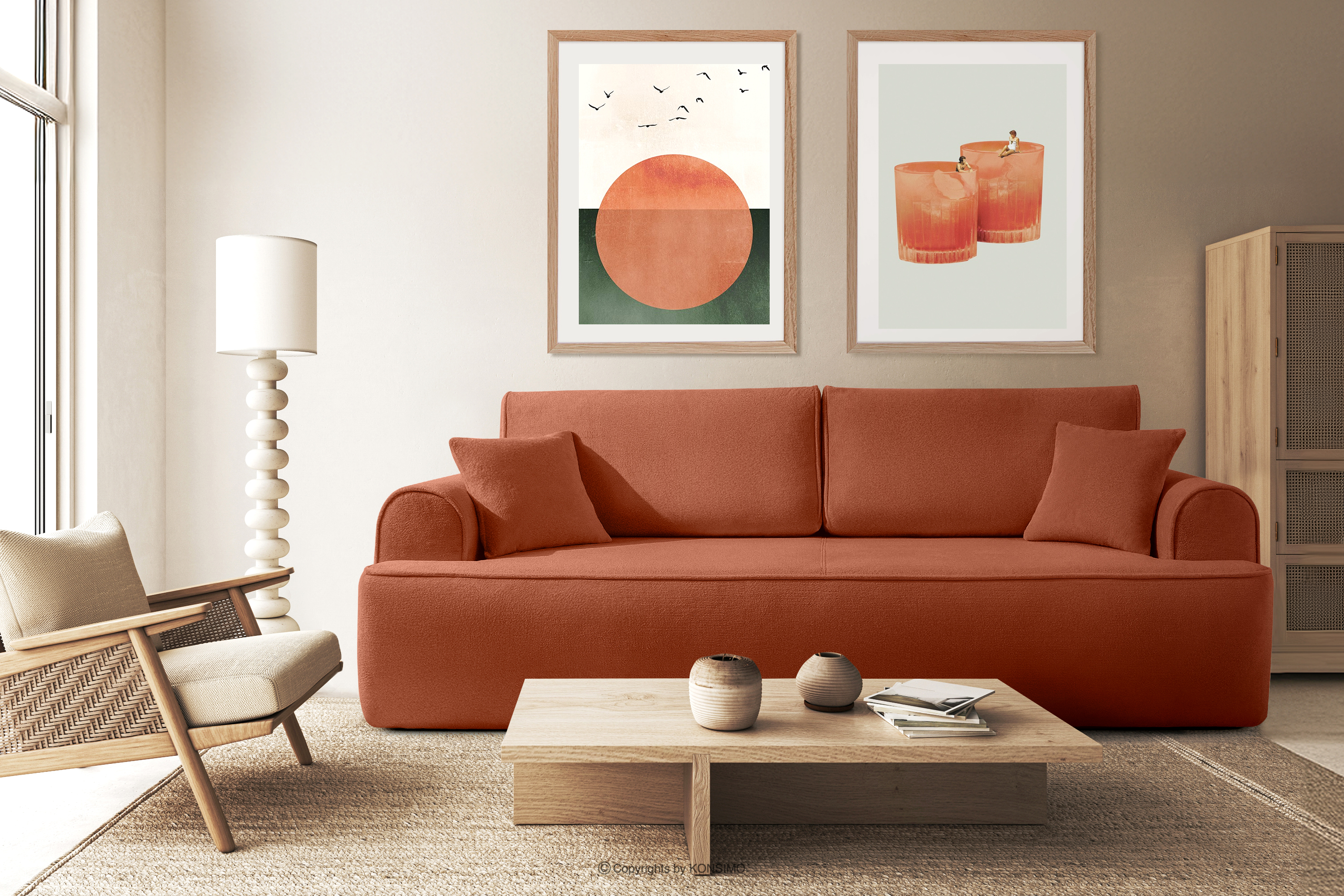 Sofa shaggy trzyosobowa rozkładana rudy MESSO - kolor rudy