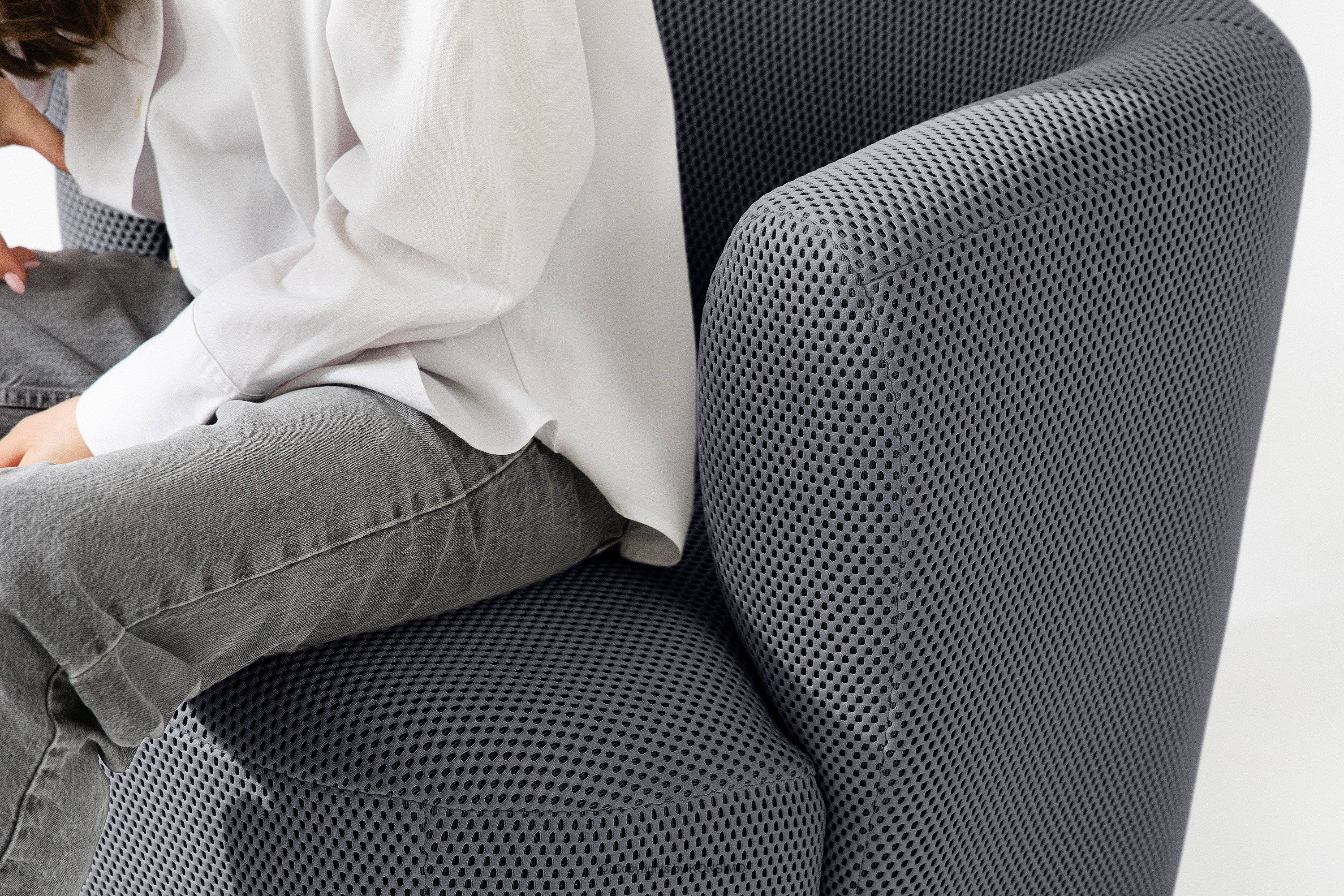 PEBROS zobacz całą kolekcję Nowoczesny fotel w tkaninie 3d ciemny szary- kolor ciemny szary