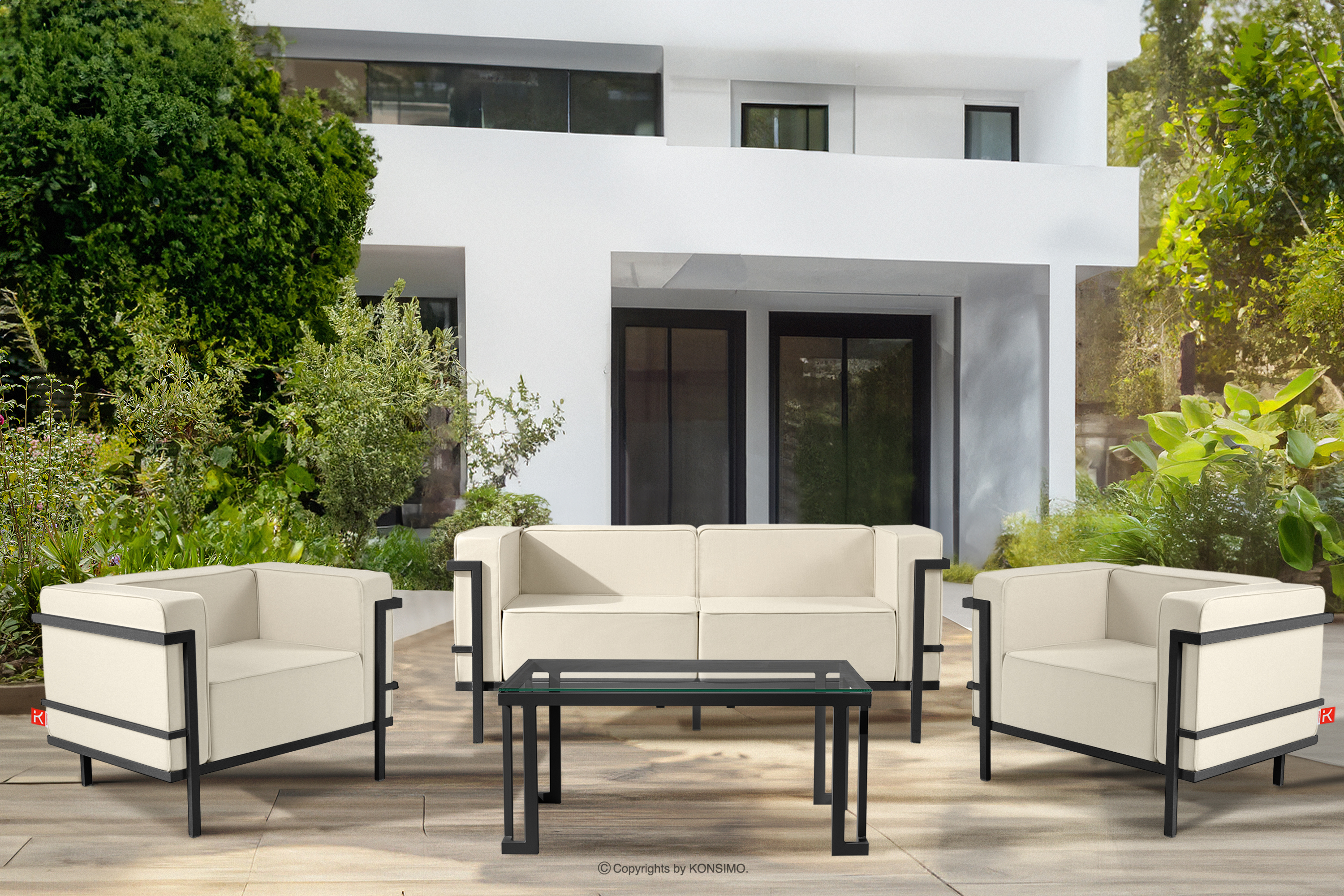 TRIGLO Nowoczesny fotel ogrodowy na metalowych nóżkach ciemny szary/kremowy