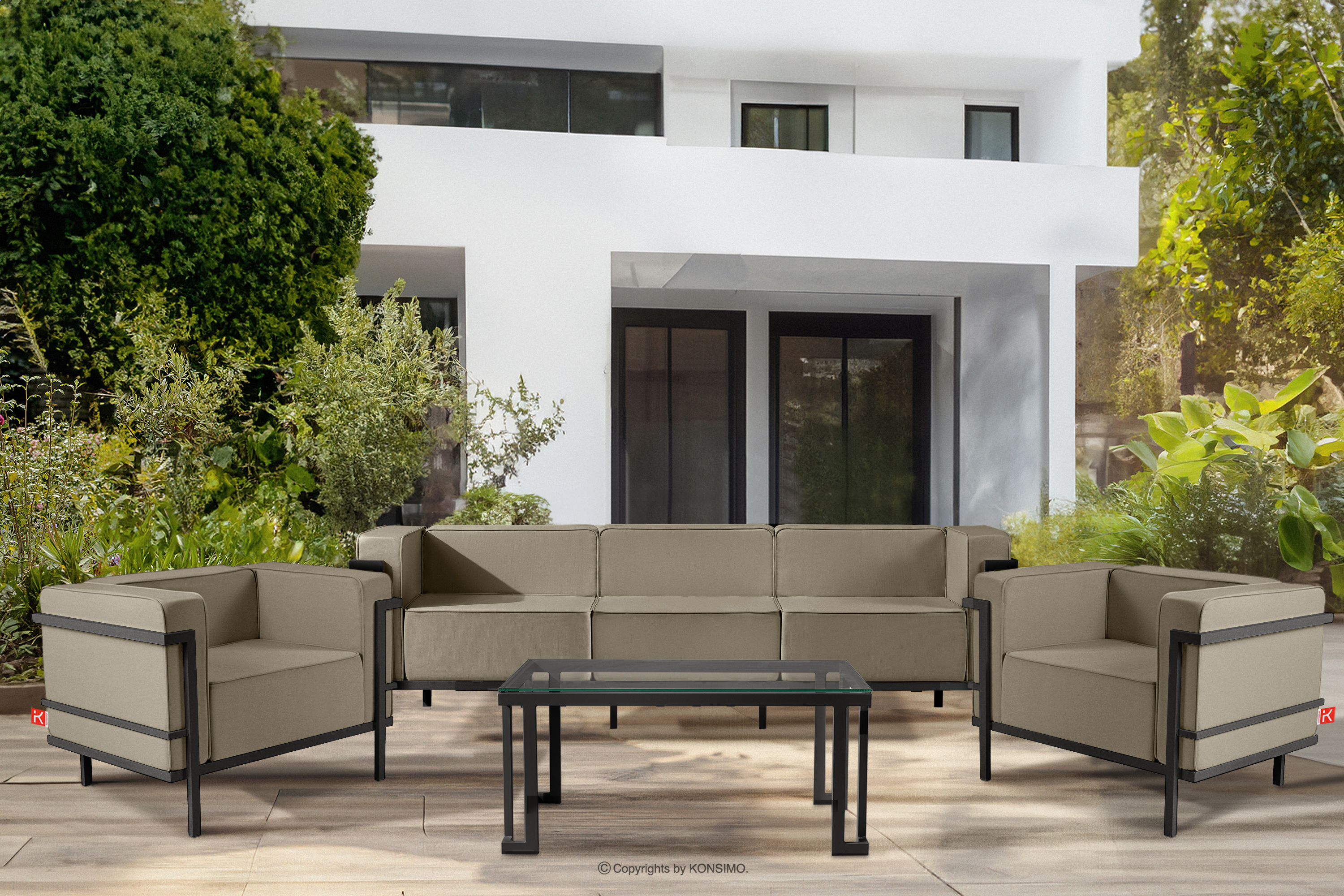 TRIGLO zobacz całą kolekcję Nowoczesna sofa ogrodowa 3 na metalowych nóżkach ciemny szary/beżowy- kolor ciemny szary/beżowy