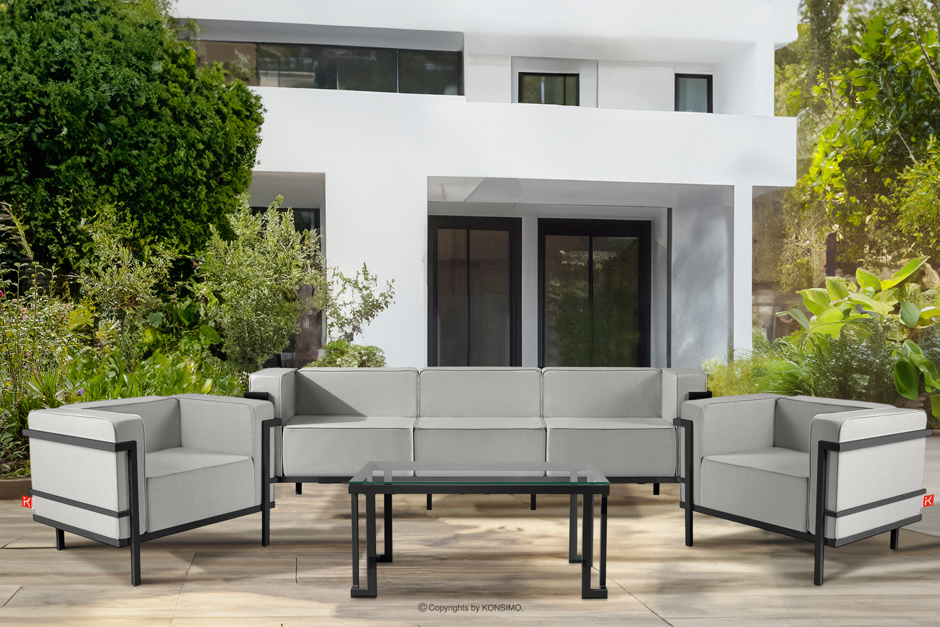 TRIGLO Nowoczesna sofa ogrodowa 3 na metalowych nóżkach ciemny szary/jasny szary