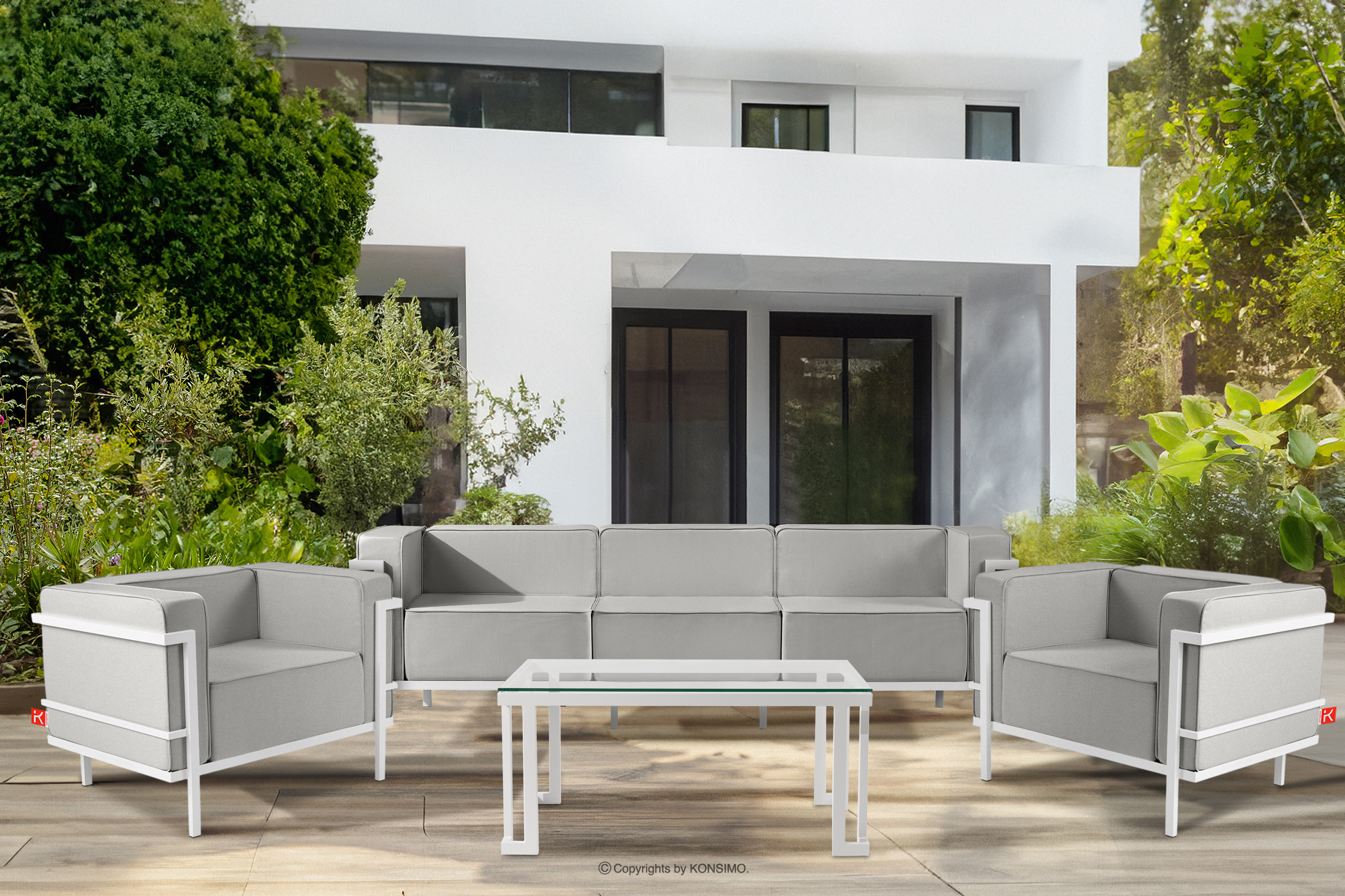 TRIGLO zobacz całą kolekcję Nowoczesna sofa ogrodowa 3 na metalowych nóżkach biały/jasny szary- kolor biały/jasny szary