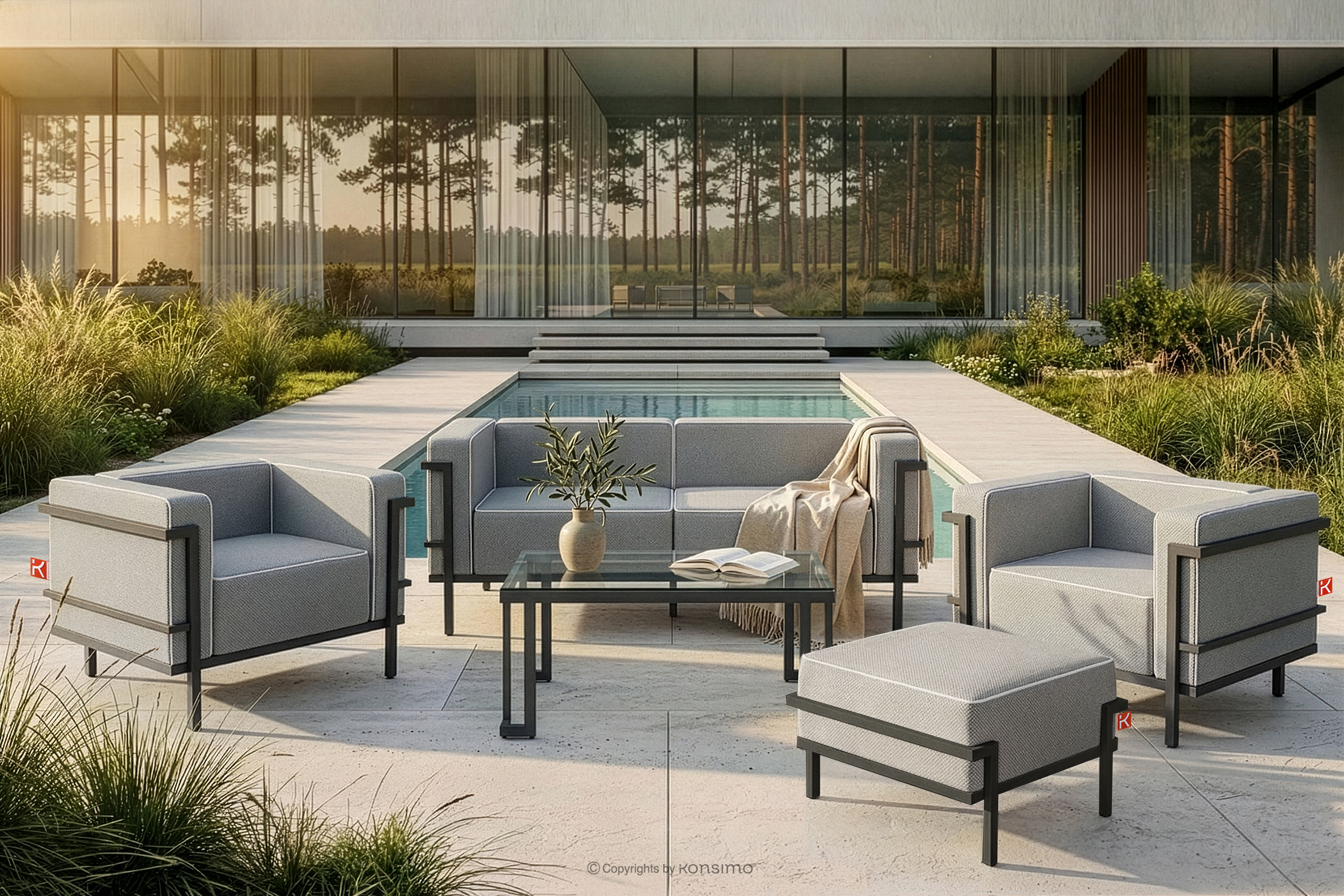 TRIGLO zobacz całą kolekcję Puf ogrodowy na metalowych nóżkach ciemny szary/ciemny szary/biały- kolor ciemny szary/ciemny szary/biały