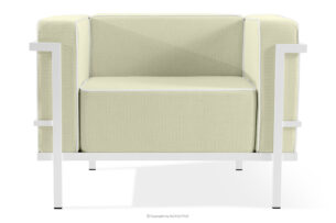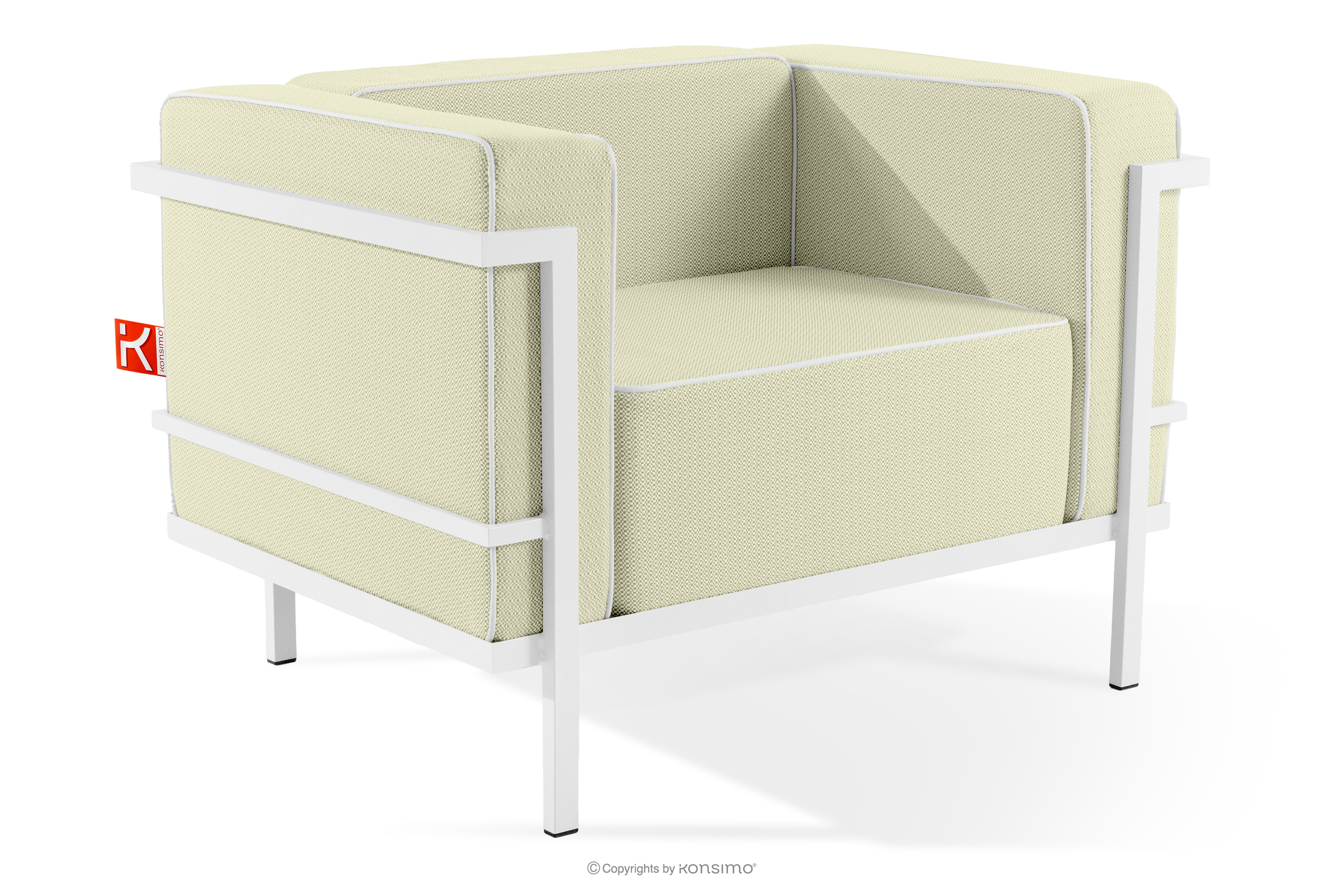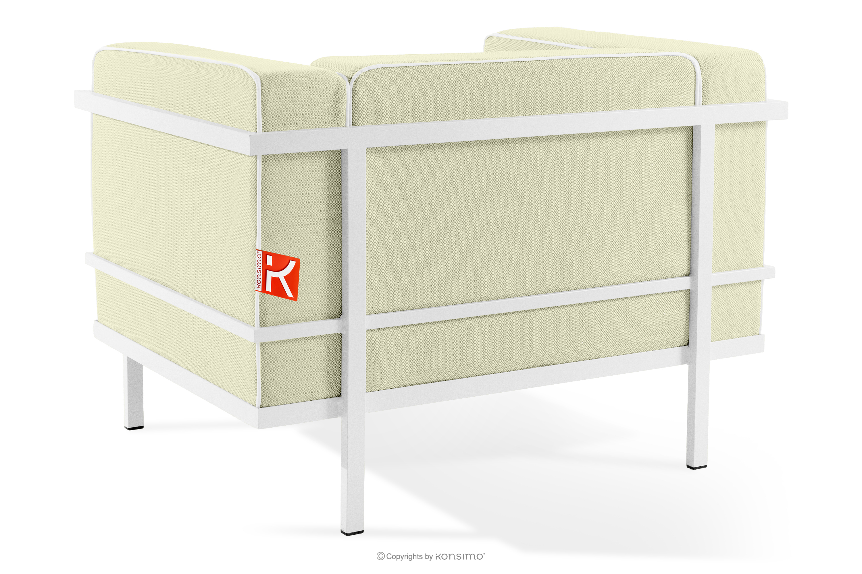 TRIGLO zobacz całą kolekcję Nowoczesny fotel ogrodowy na metalowych nóżkachbiały/jasny zielony/biały- kolor biały/jasny zielony/biały