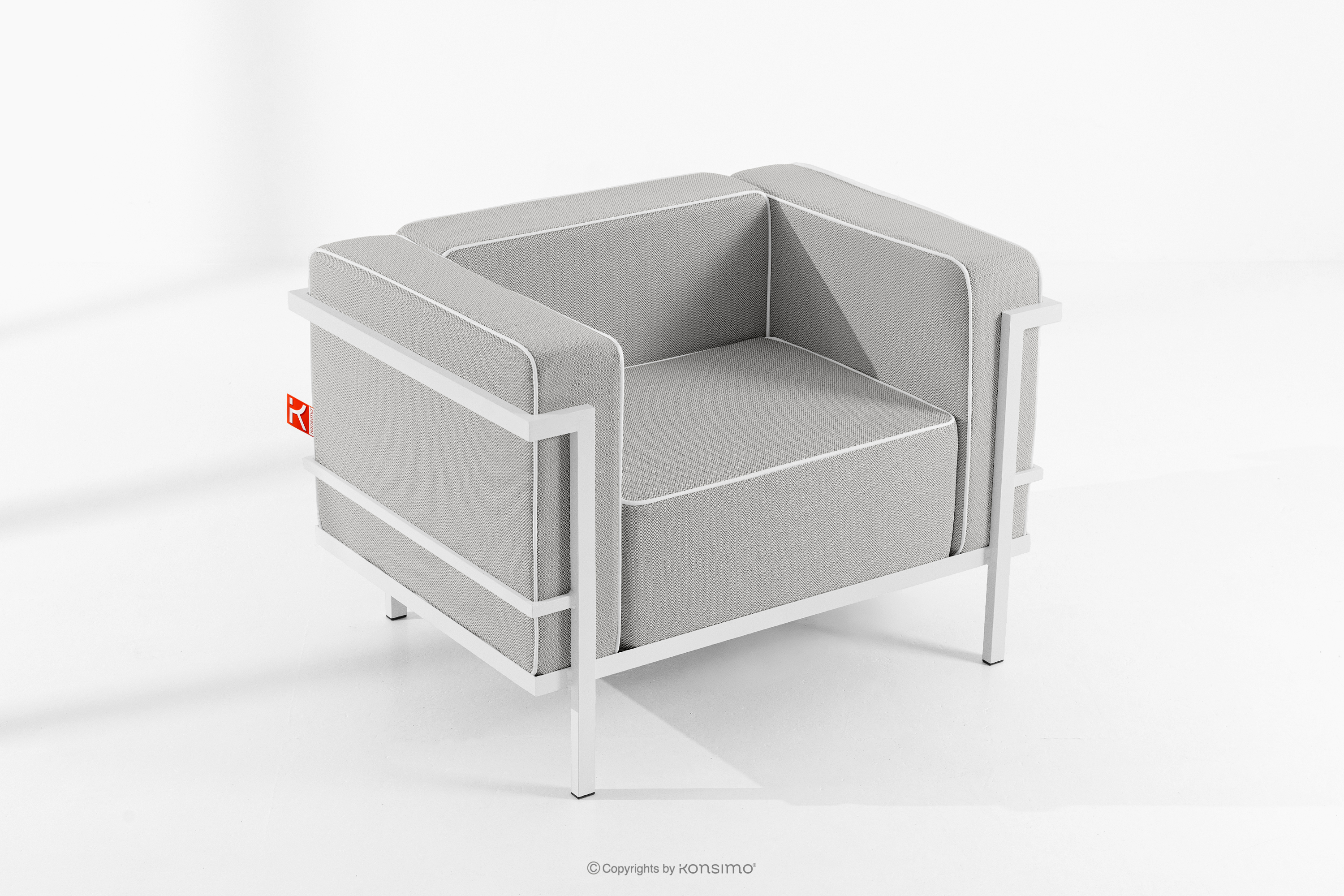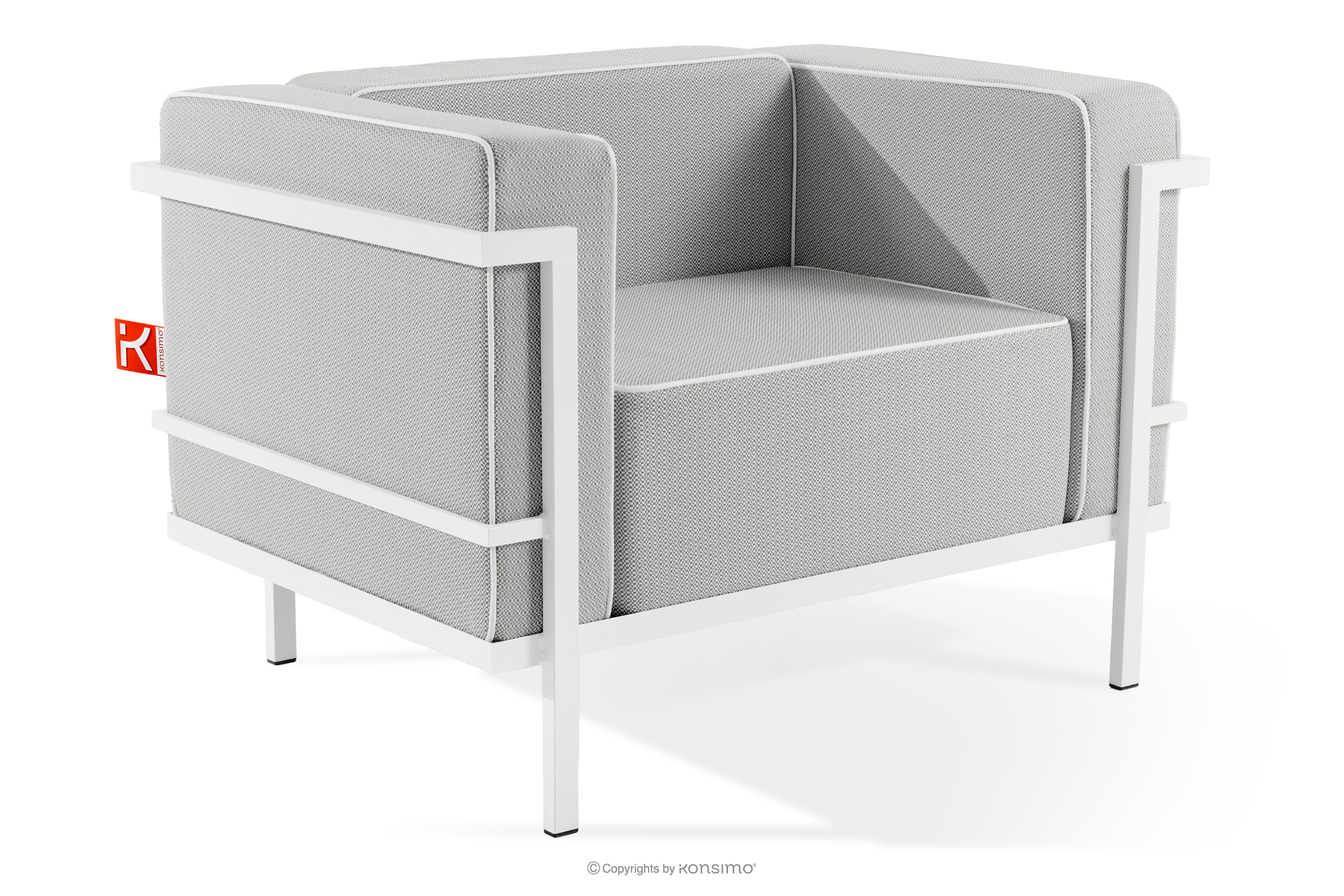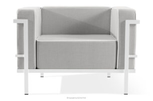 TRIGLO zobacz całą kolekcję Nowoczesny fotel ogrodowy na metalowych nóżkachbiały/ciemny szary/biały- kolor biały/ciemny szary/biały