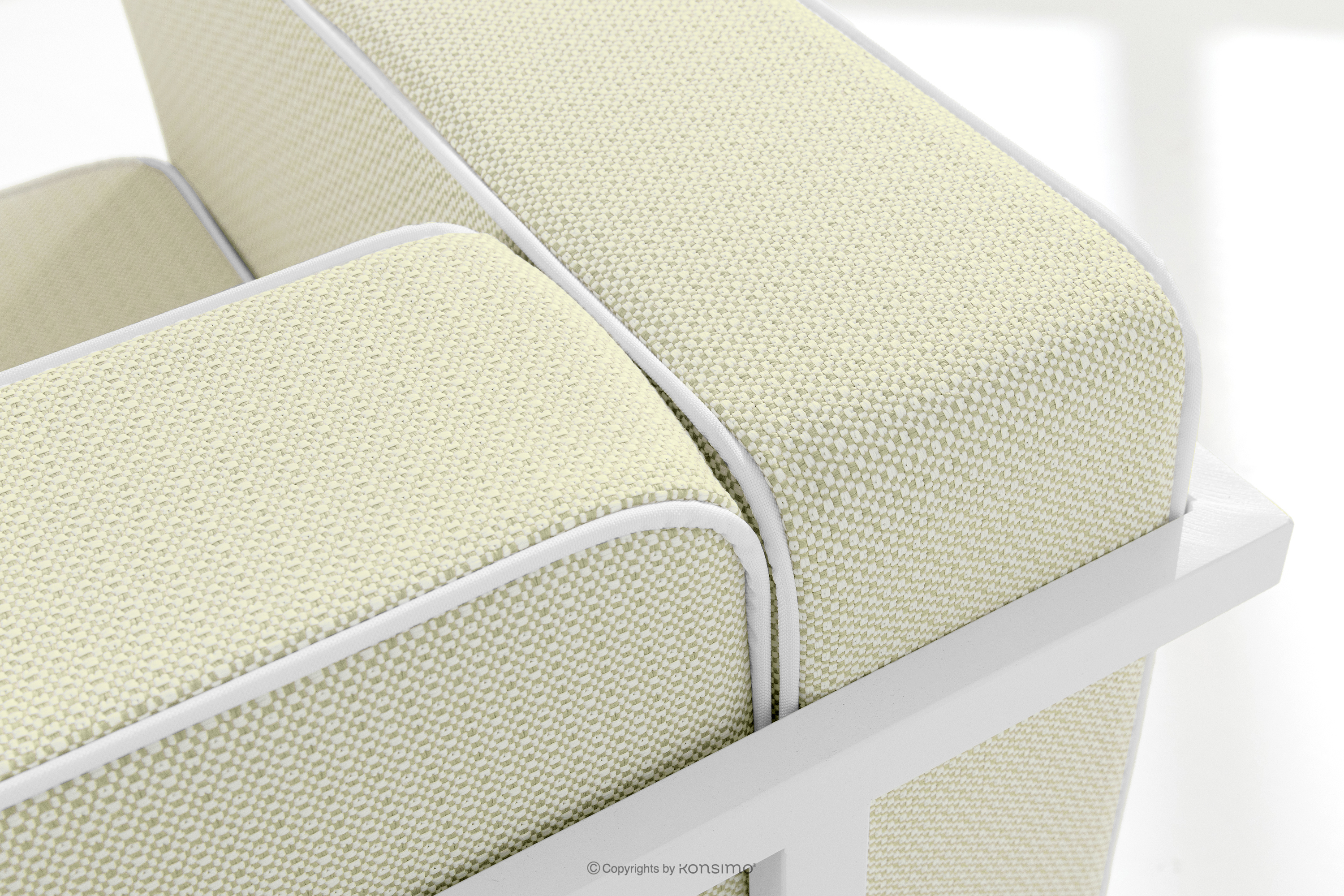TRIGLO zobacz całą kolekcję Nowoczesna sofa ogrodowa 2 na metalowych nóżkach biały/jasny zielony/biały- kolor biały/jasny zielony/biały