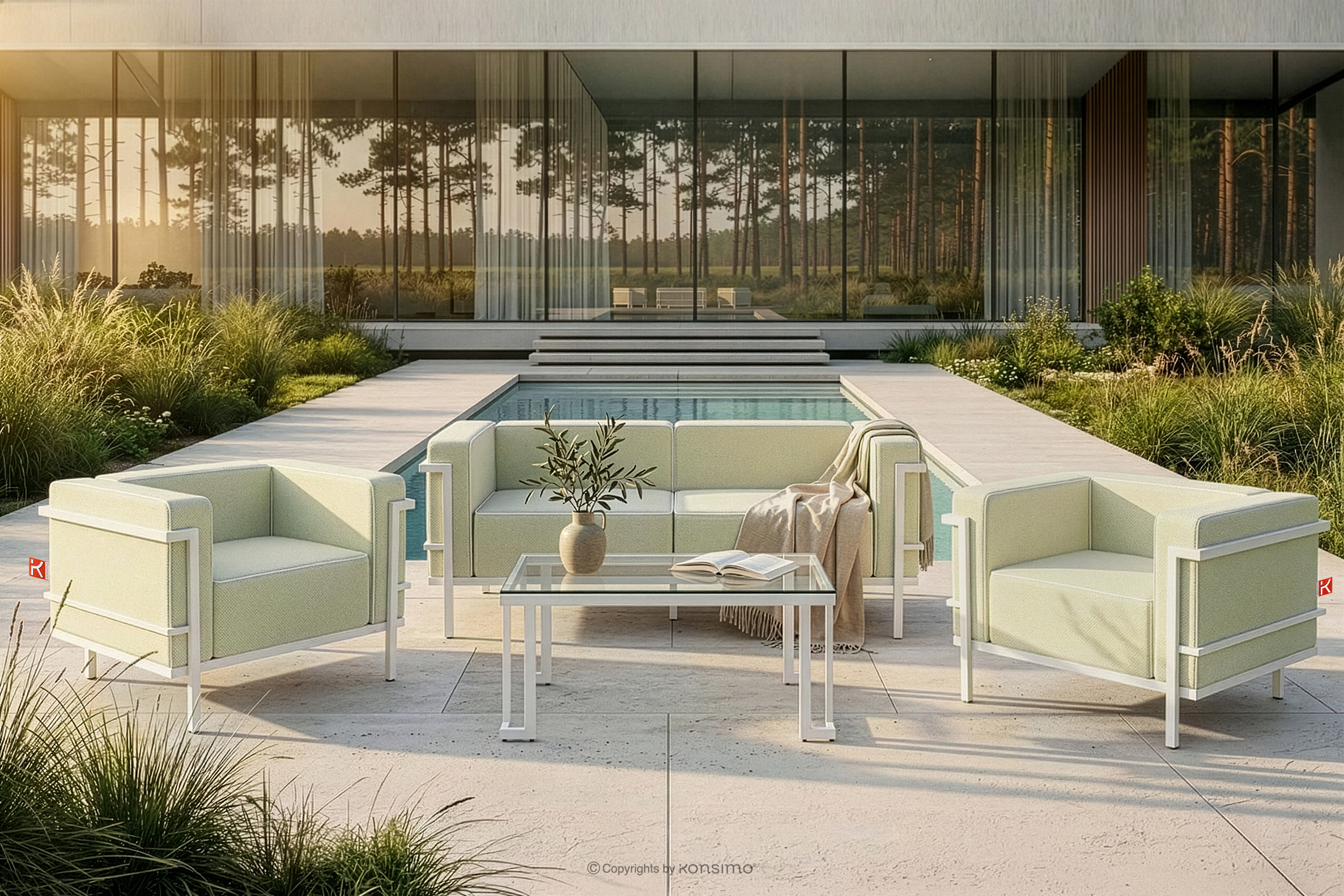 TRIGLO Nowoczesna sofa ogrodowa 2 na metalowych nóżkach biały/jasny zielony/biały