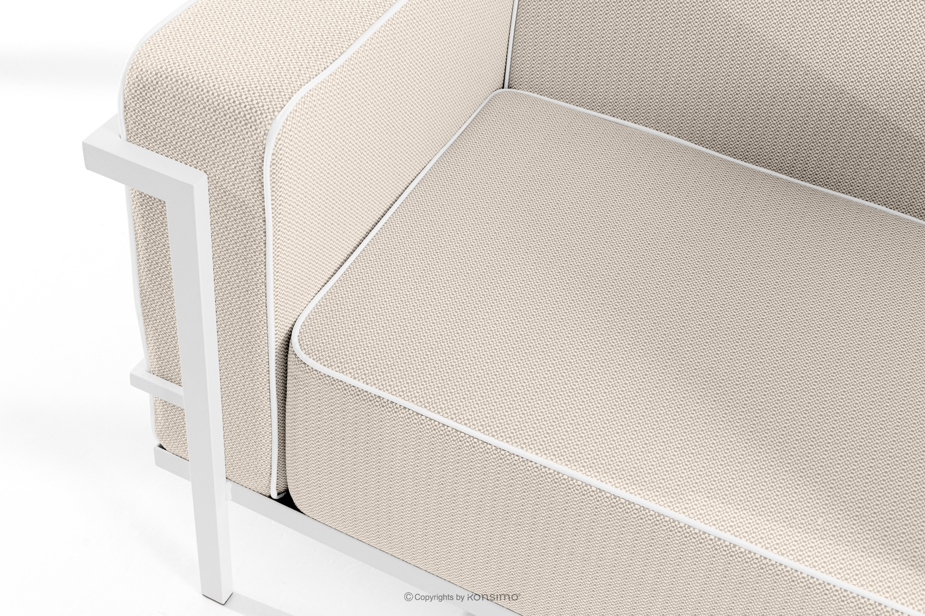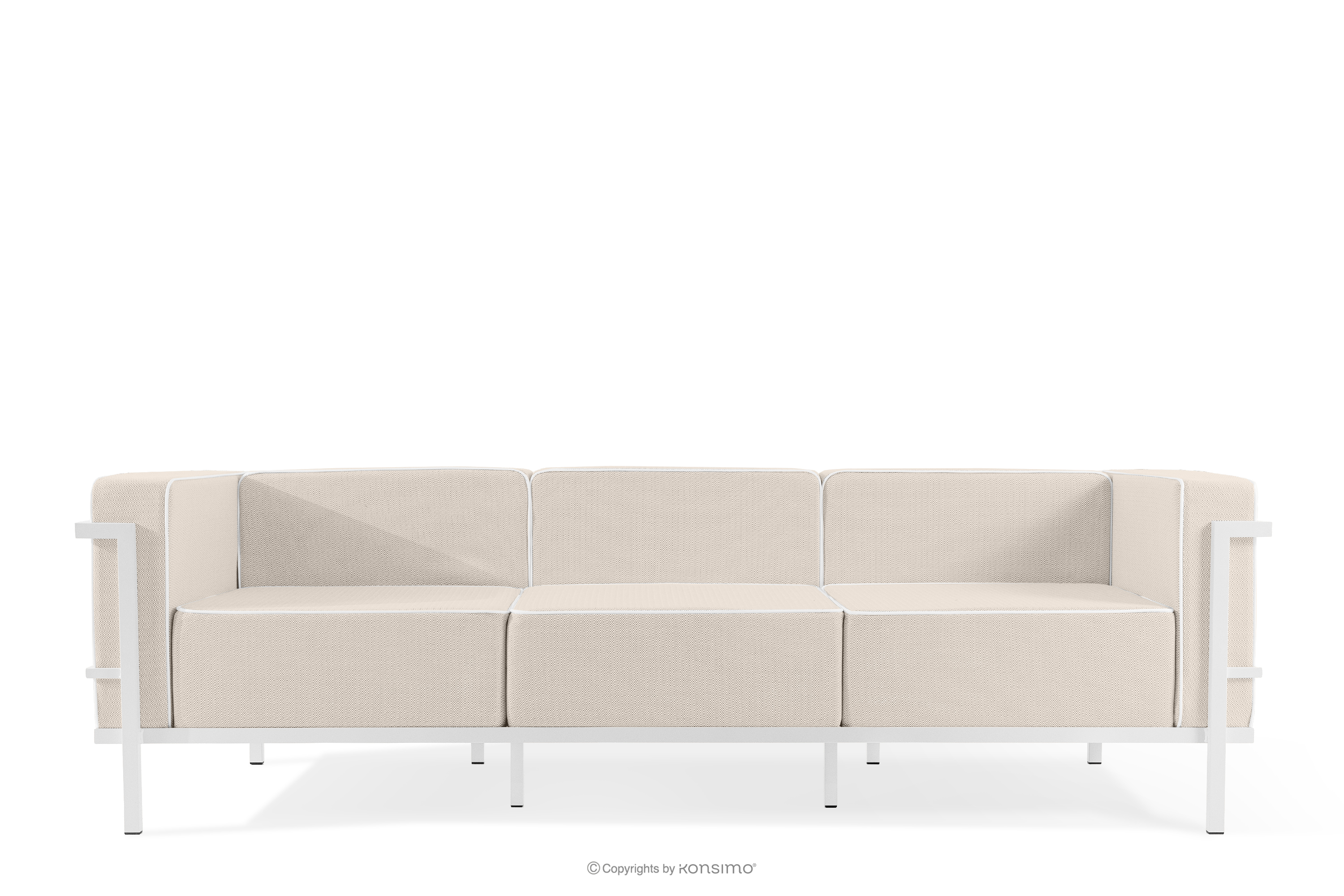 TRIGLO Nowoczesna sofa ogrodowa 3 na metalowych nóżkach biały/ciemny beżowy/biały