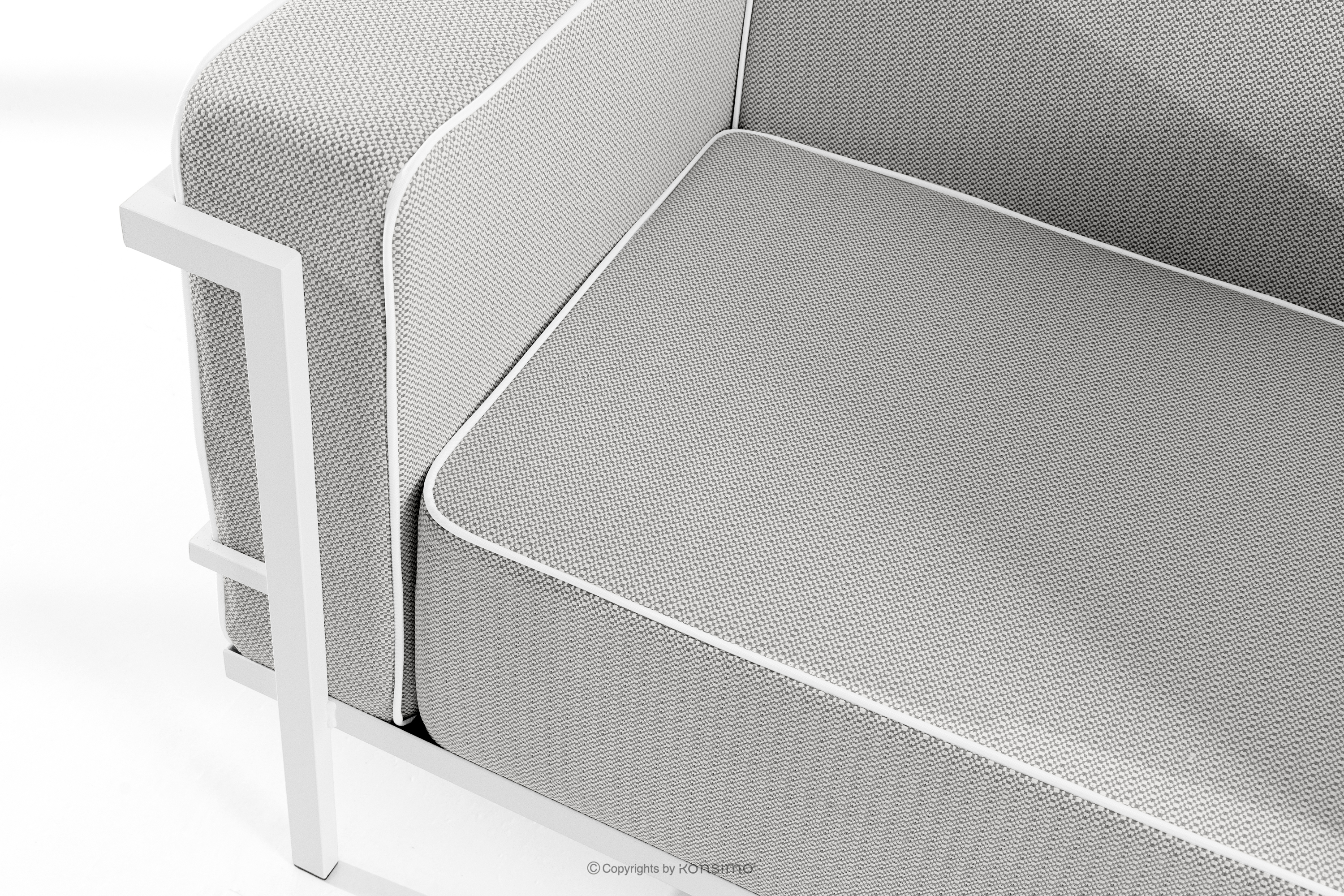 TRIGLO zobacz całą kolekcję Nowoczesna sofa ogrodowa 3 na metalowych nóżkach biały/ciemny szary/biały- kolor biały/ciemny szary/biały
