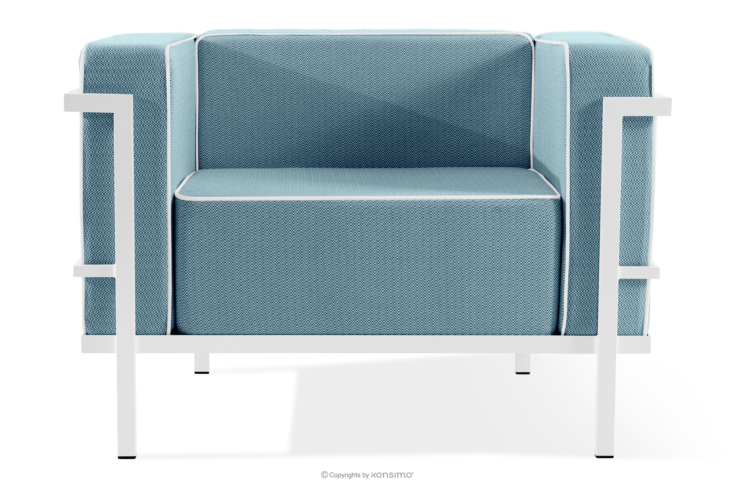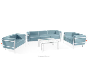 TRIGLO Zestaw mebli ogrodowych 2x fotel, sofa trzyosobowa, stolik biały/morski/biały