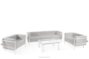TRIGLO zobacz całą kolekcję Zestaw mebli ogrodowych 2x fotel, sofa trzyosobowa, stolik biały/ciemny szary/biały- kolor biały/ciemny szary/biały