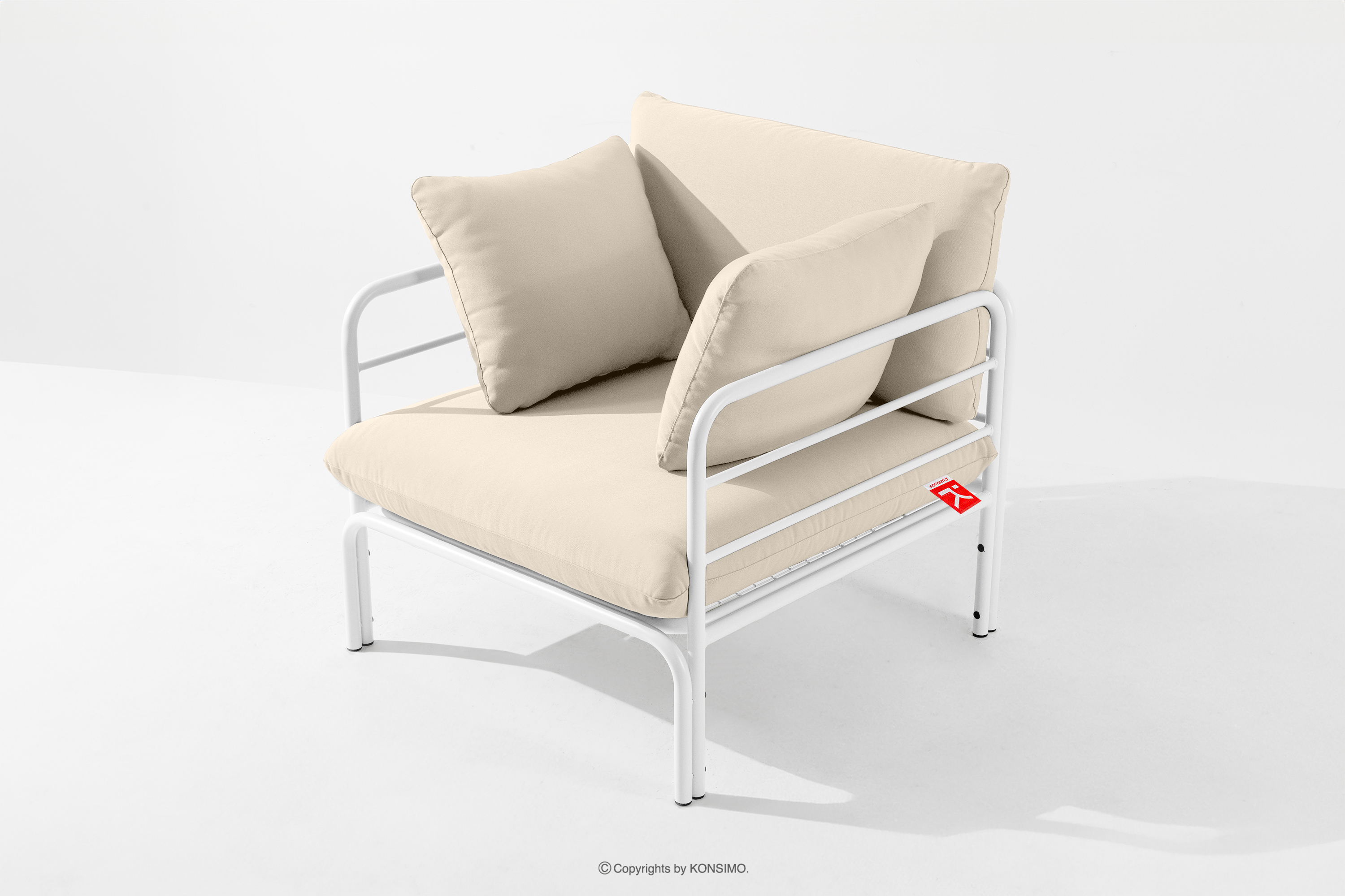 RAMBE Loftowy fotel ogrodowy na metalowych nogach biały/kremowy