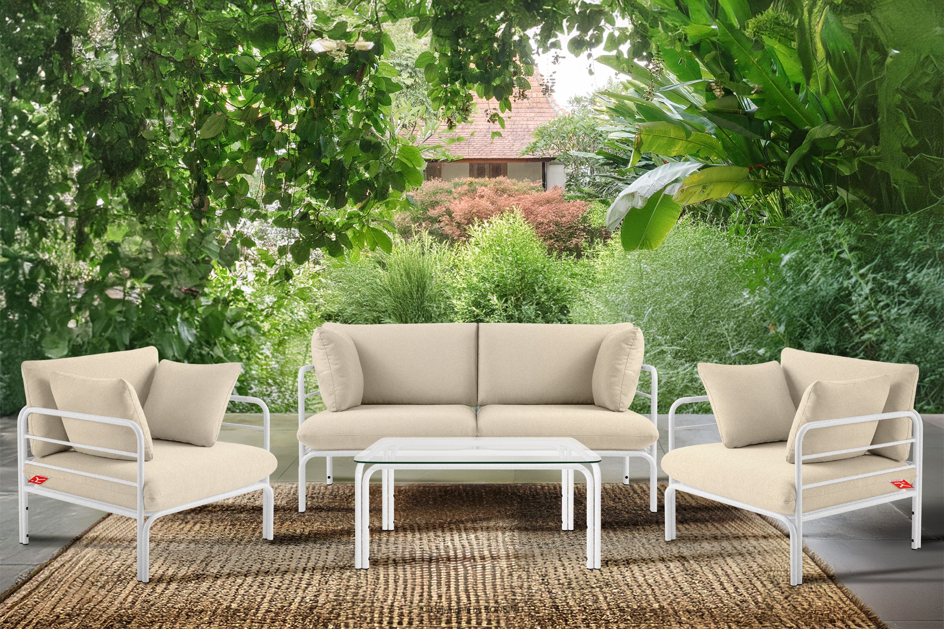 dla produktu Loftowa sofa ogrodowa 2 na metalowych nogach biały/kremowy