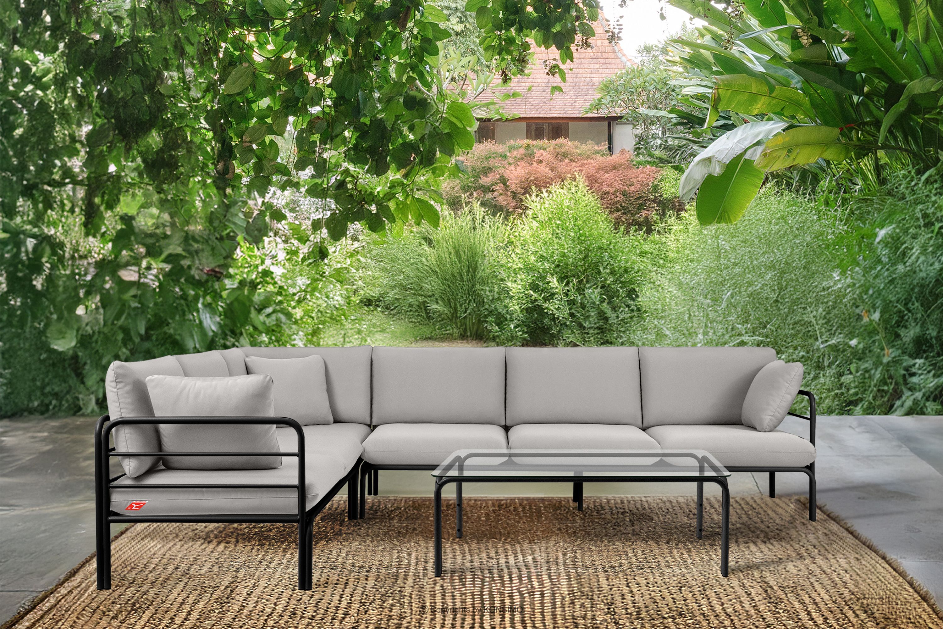 RAMBE zobacz całą kolekcję Duży narożnik ogrodowy loft na metalowych nogach antracytowy/jasny szary- kolor antracytowy/jasny szary