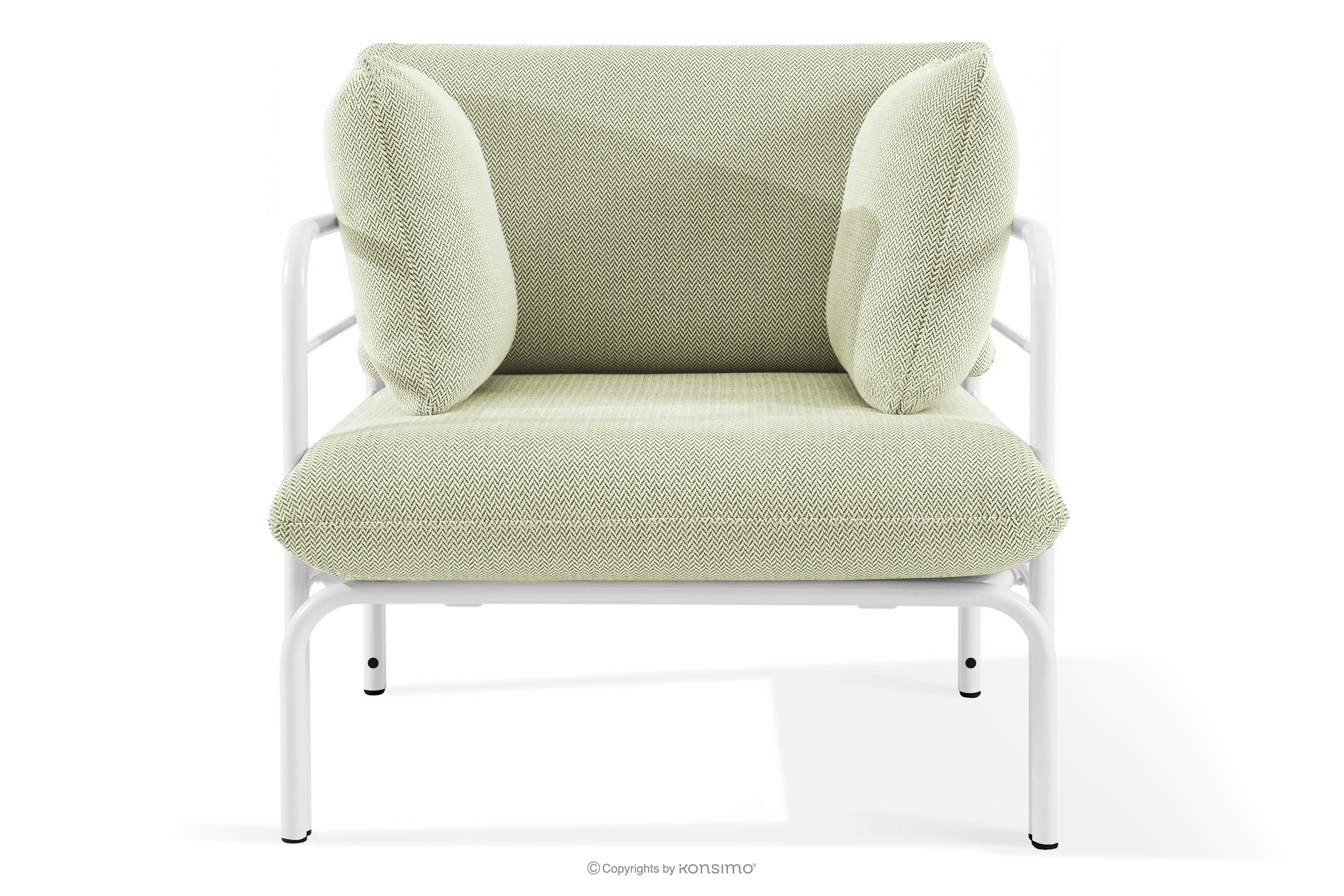 RAMBE Loftowy fotel ogrodowy na metalowych nogach biały/jasny zielony/biały