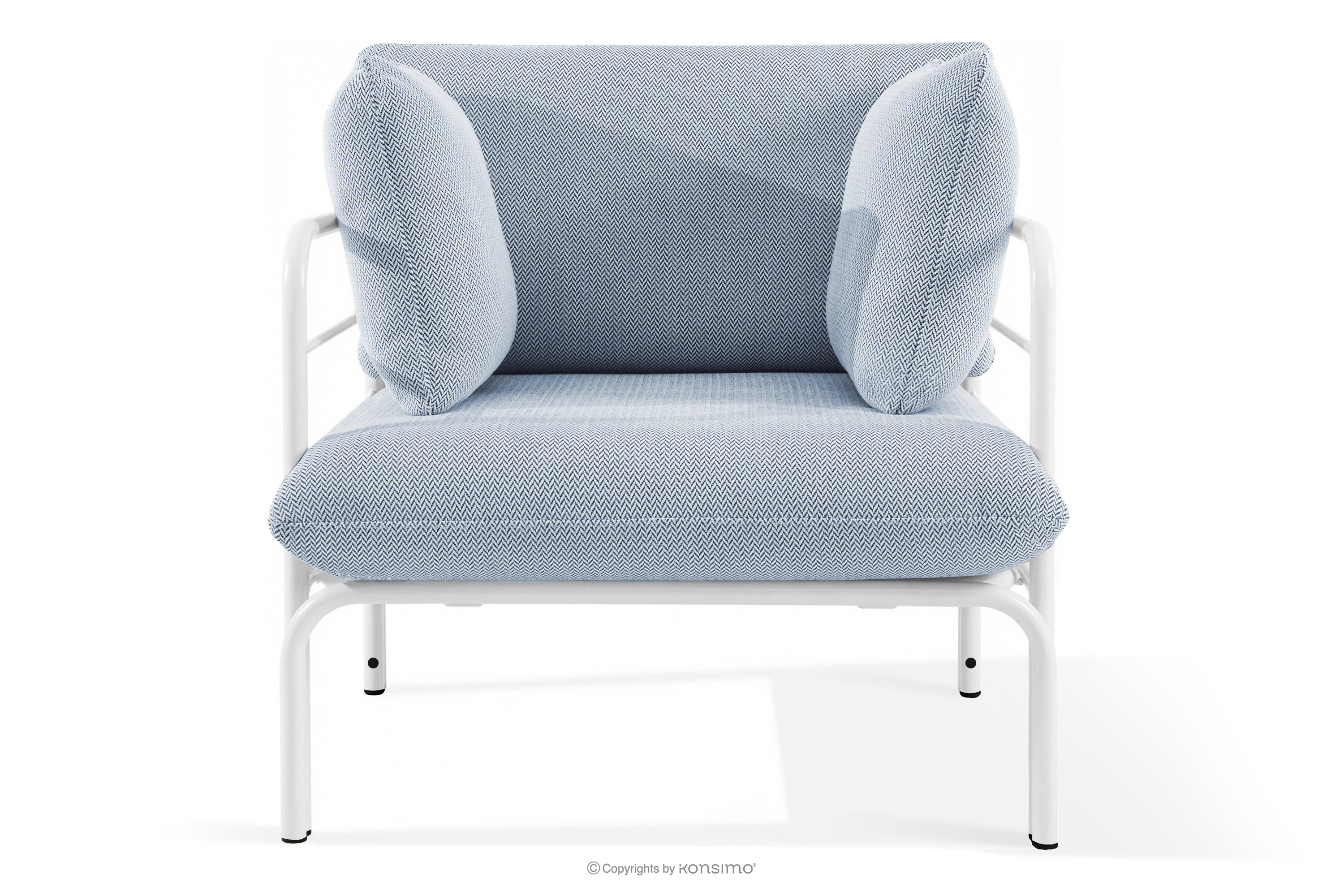 RAMBE zobacz całą kolekcję Loftowy fotel ogrodowy na metalowych nogach biały/błękitny/biały- kolor biały/błękitny/biały