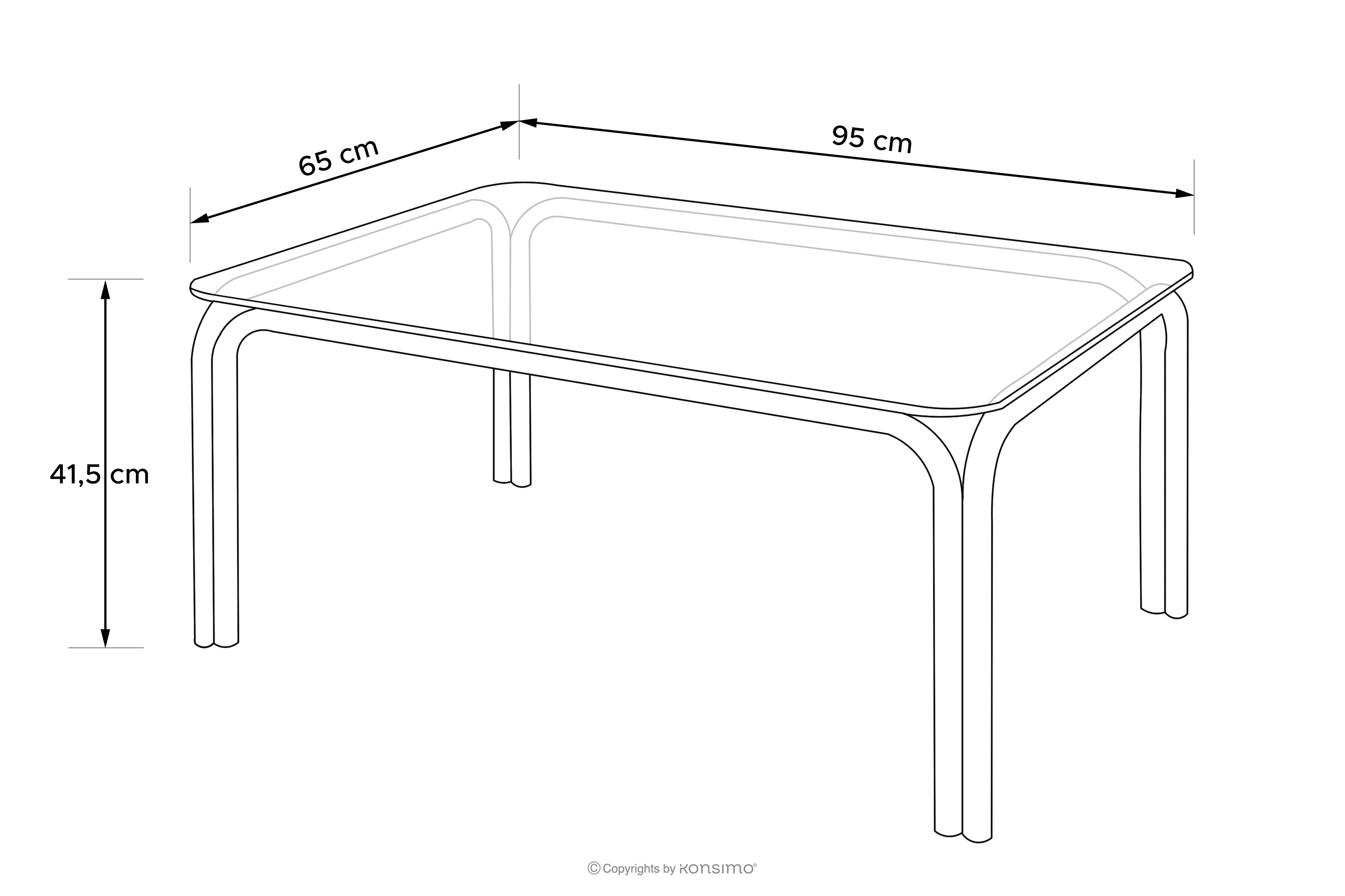 • Stolik: 95x41,5x65 cm