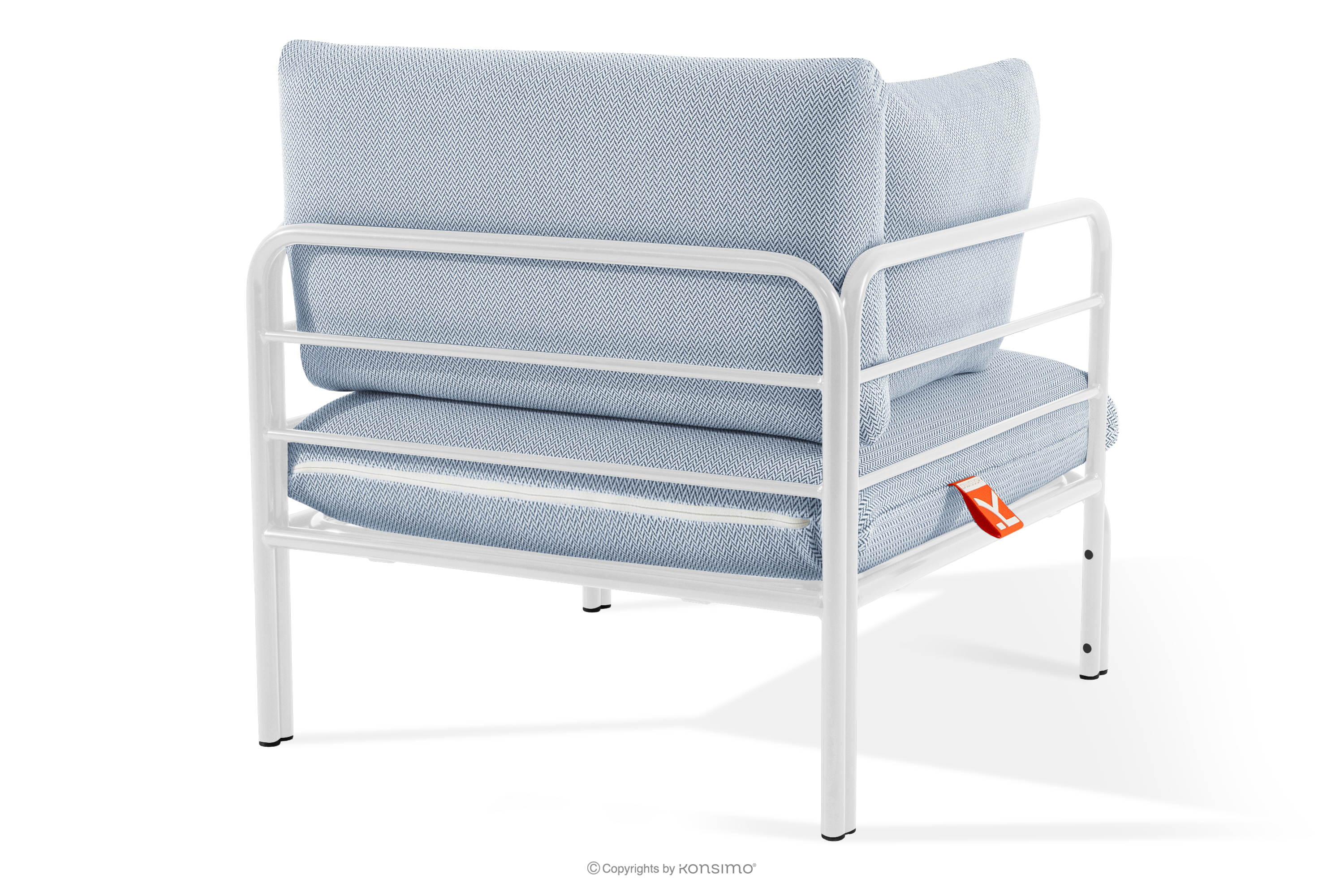 RAMBE zobacz całą kolekcję Zestaw mebli ogrodowych 2x fotel, sofa dwuosobowa, stolik biały/błękitny/biały- kolor biały/błękitny/biały