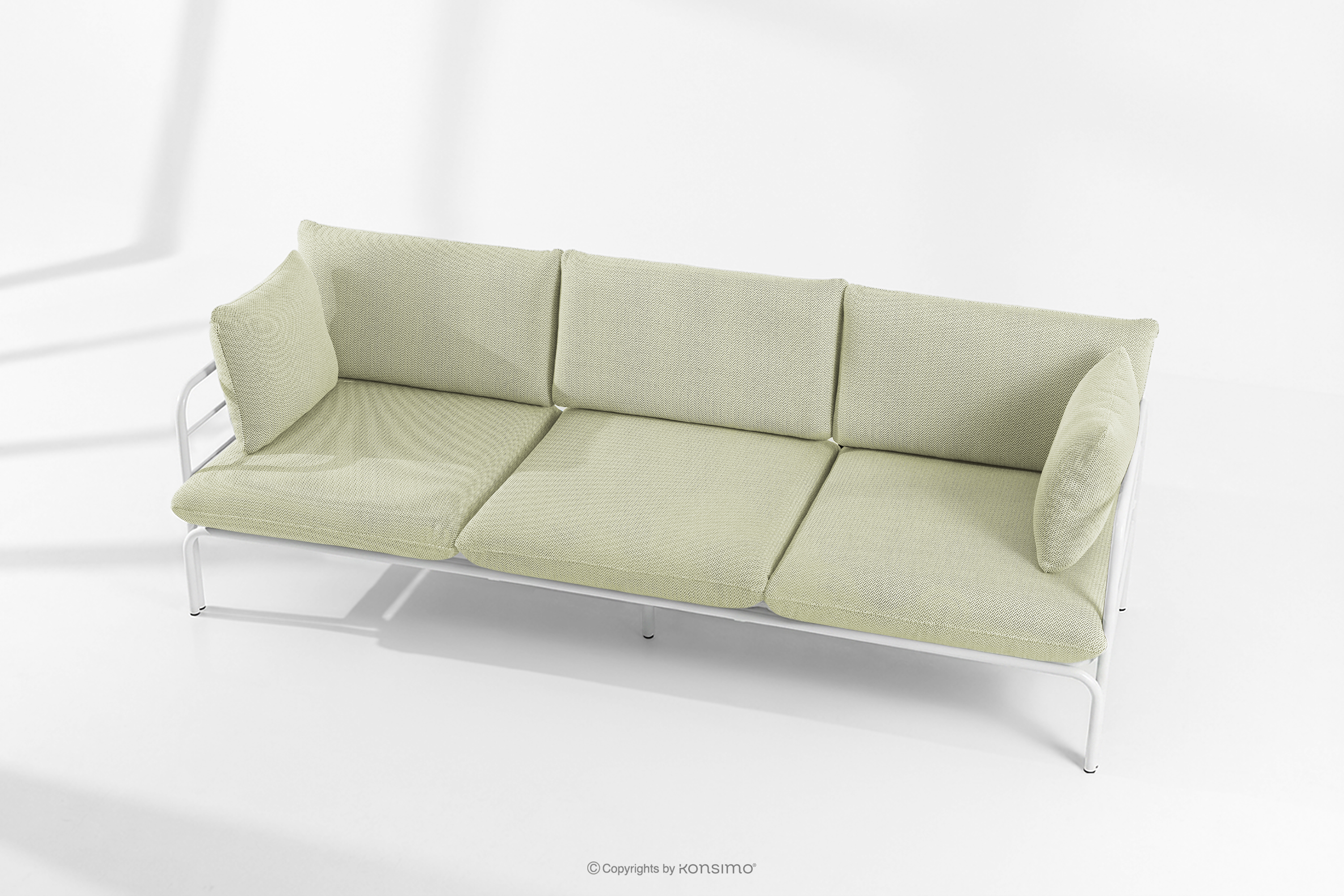 Zestaw mebli ogrodowych 2x fotel, sofa trzyosobowa, stolik biały/jasny zielony/biały wykonany z wytrzymałej stali, nie tylko dodaje elegancji do przestrzeni, ale także zapewnia wyjątkowy komfort. Dzięki miękkiej piance siedziska i oparcia, wypoczynek na świeżym powietrzu staje się prawdziwą przyjemnością. Mebel postawiony na solidnych nogach ze stali malowanej proszkowo zachowuje stabilność nawet przy intensywnym użytkowaniu.