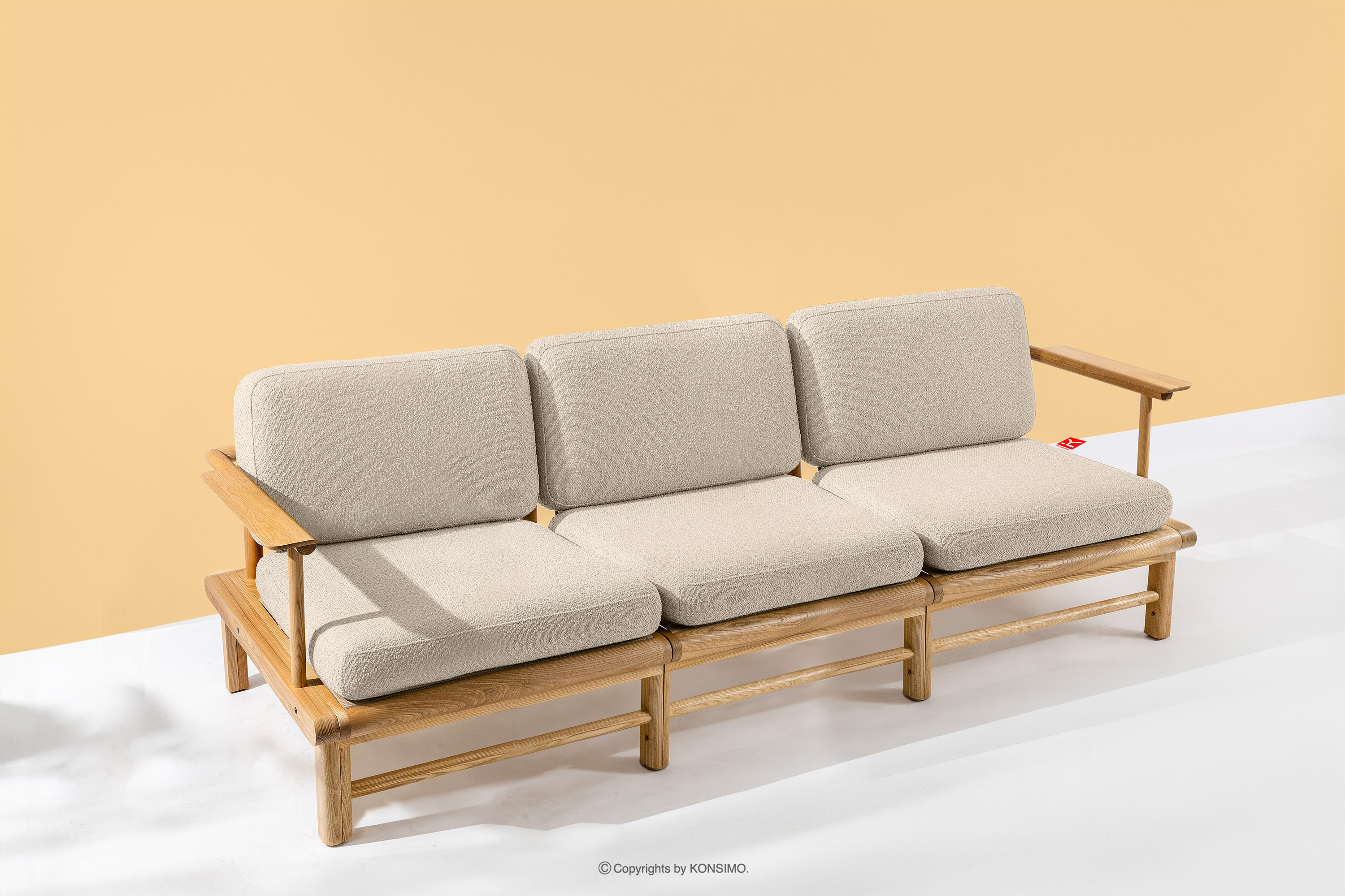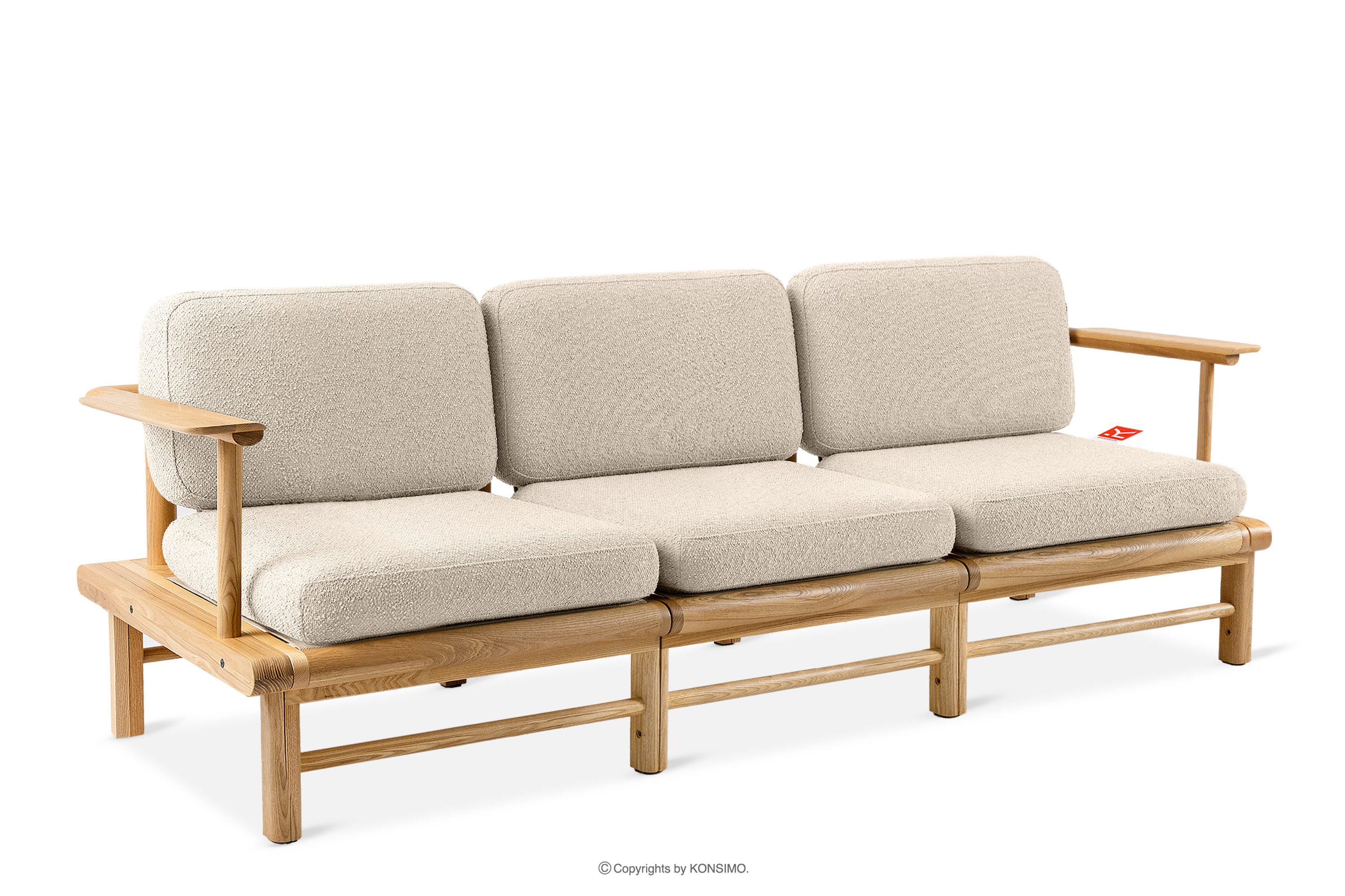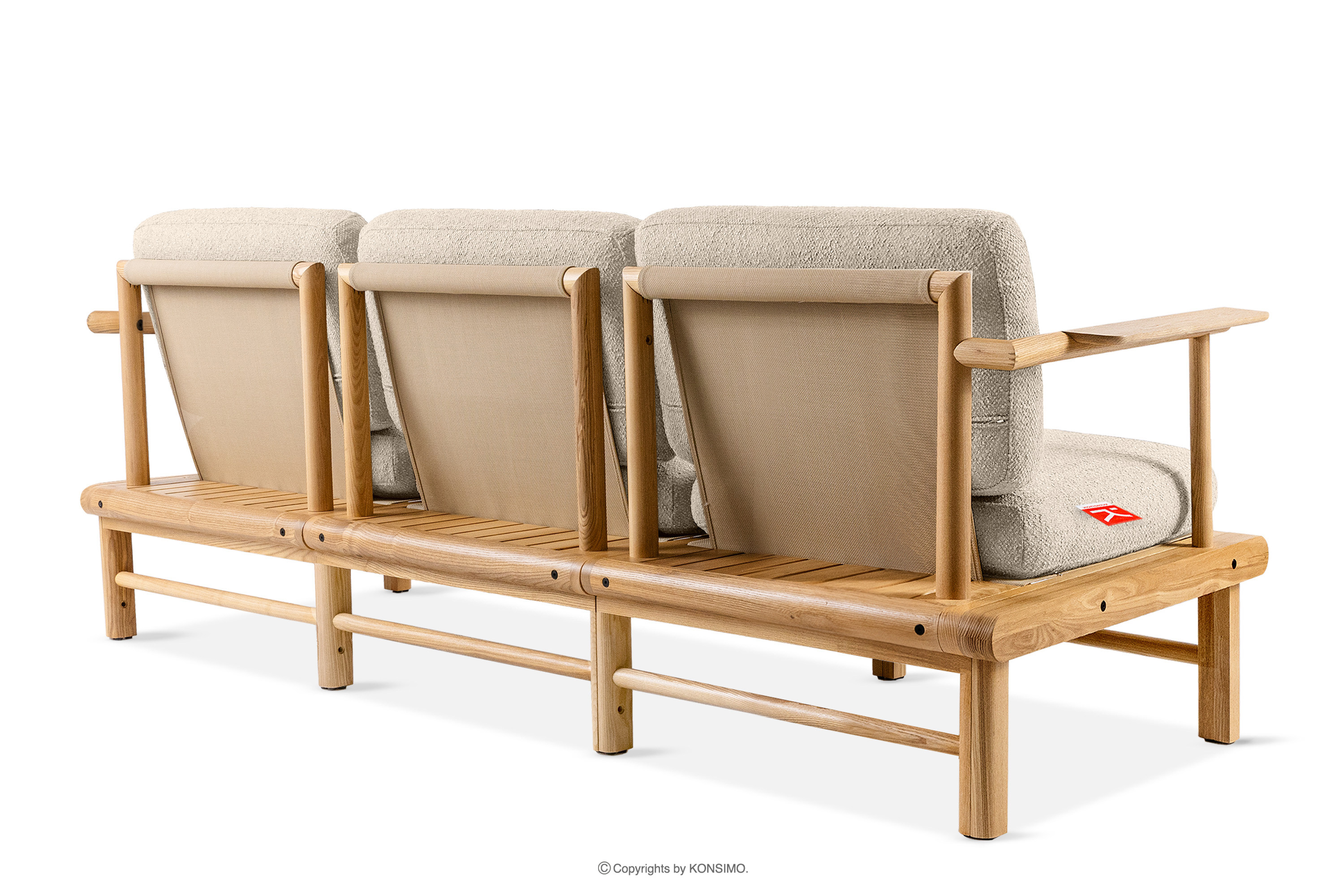 ATREDA zobacz całą kolekcję Sofa ogrodowa 3 z drewna jesionowego w stylu boho krewowy- kolor kremowy/jesion naturalny