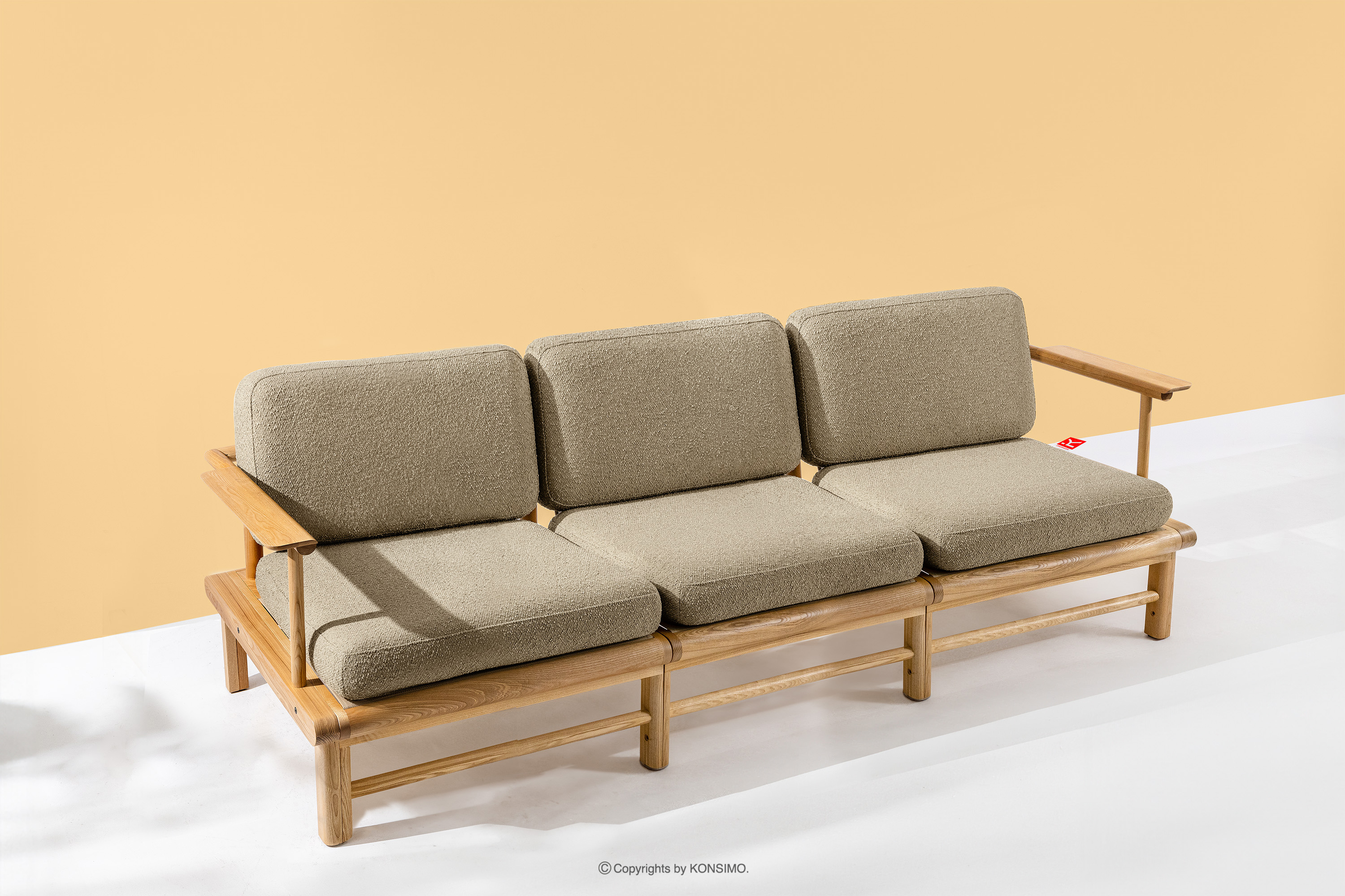ATREDA zobacz całą kolekcję Sofa ogrodowa 3 z drewna jesionowego w stylu boho beżowy- kolor beżowy/jesion naturalny