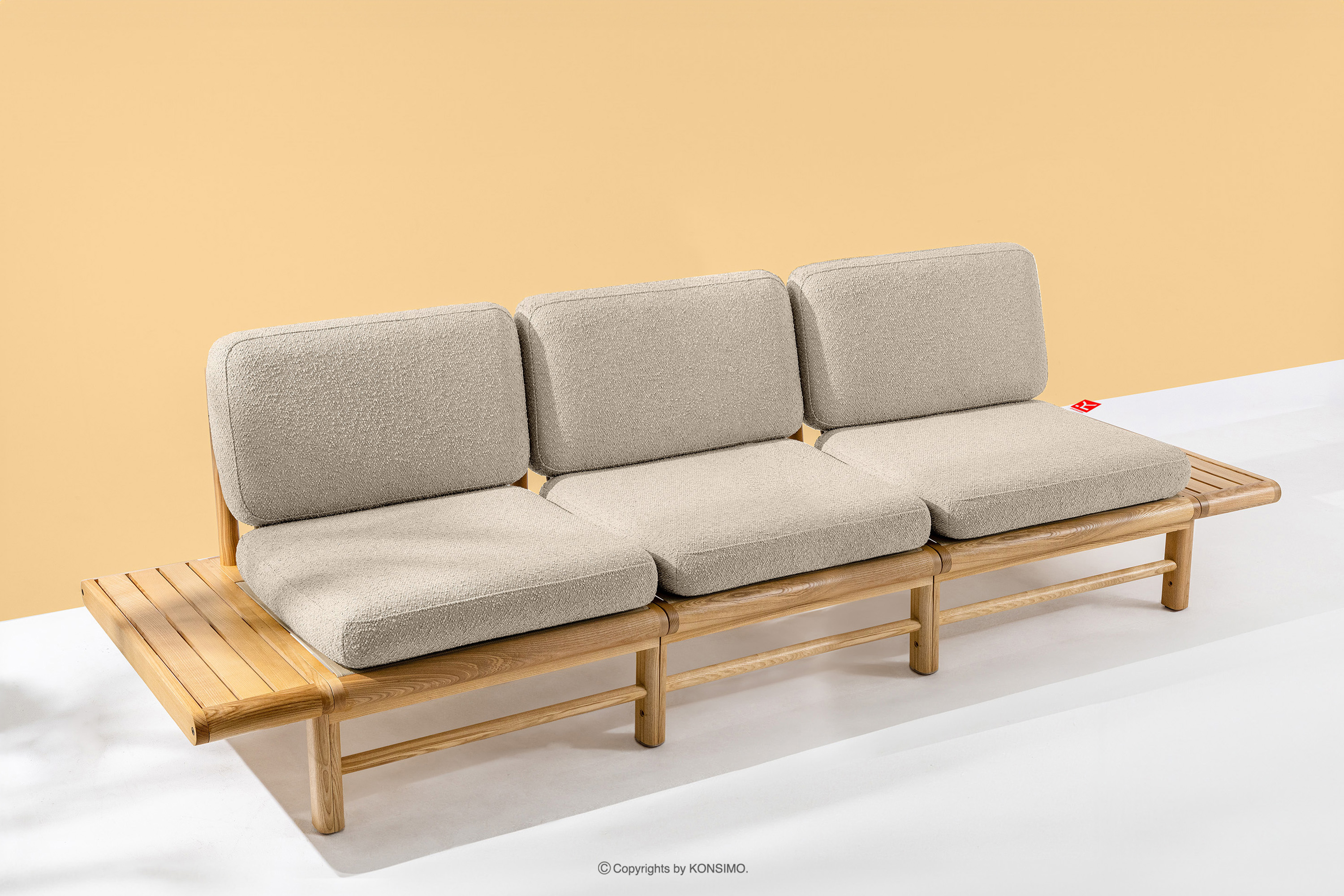 ATREDA zobacz całą kolekcję Sofa ogrodowa 3 drewniana w stylu boho krewowy- kolor kremowy/jesion naturalny