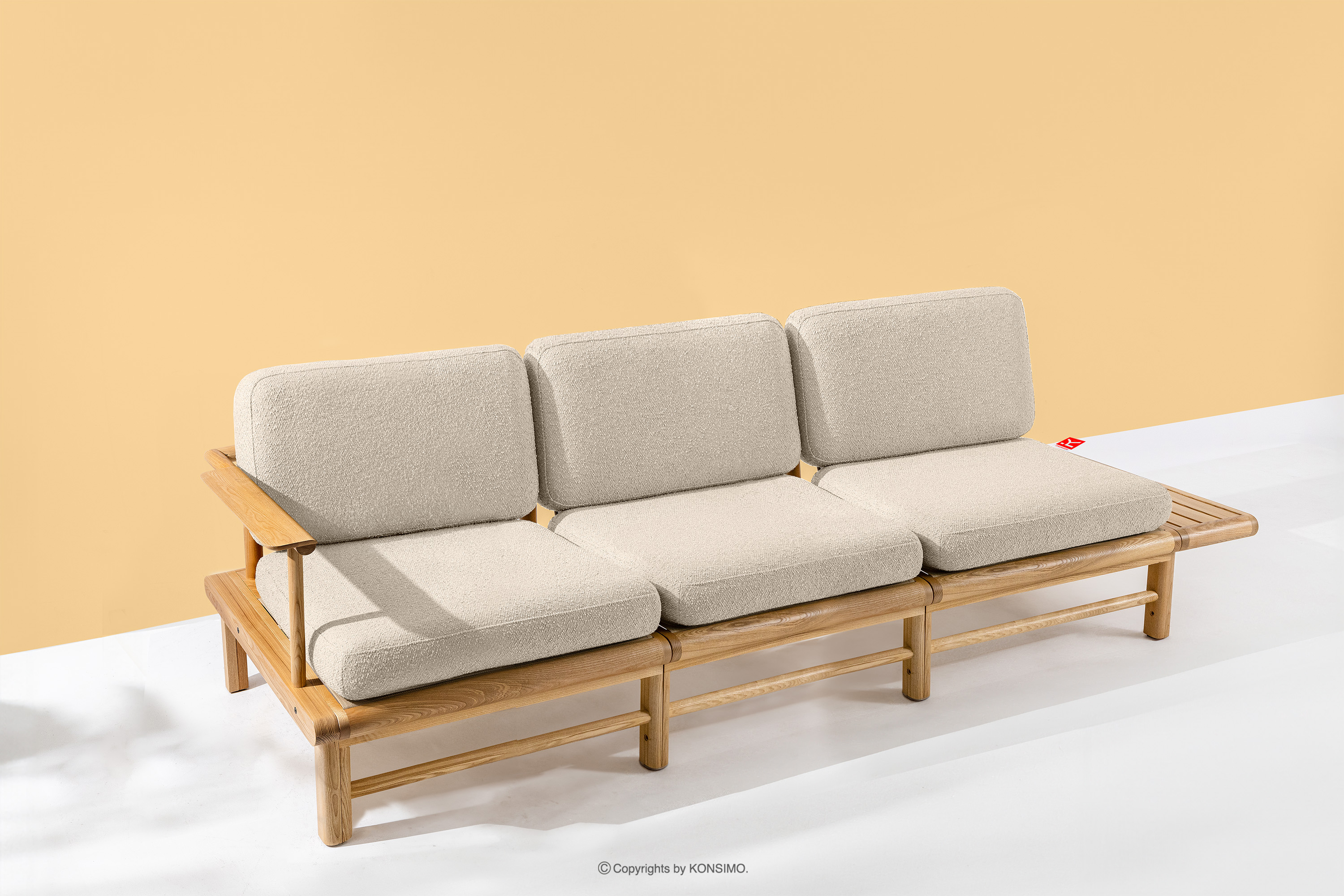ATREDA Sofa 3 ogrodowa z litego drewna jesionowego kremowy