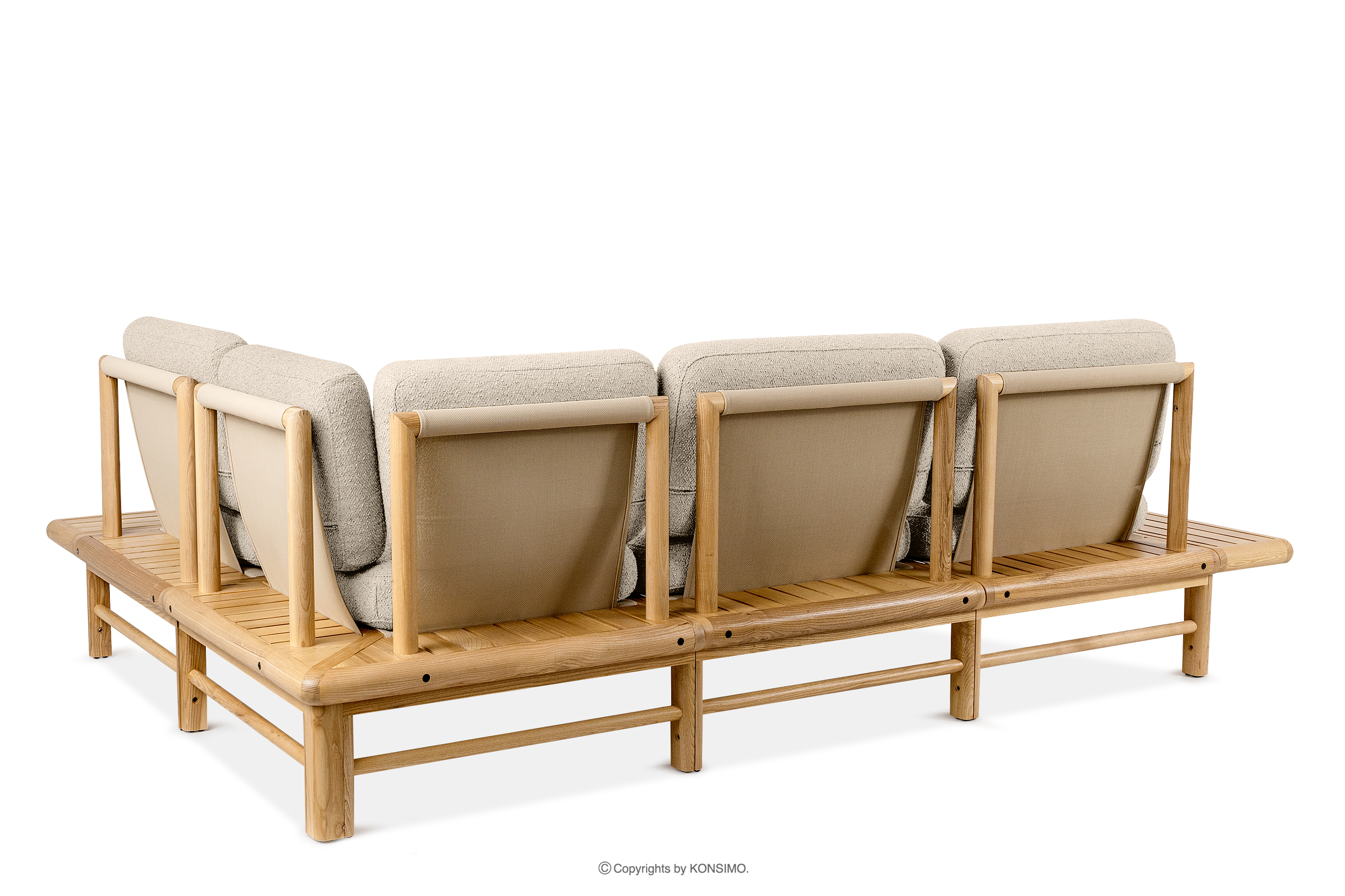 ATREDA zobacz całą kolekcję Narożnik ogrodowy boho z litego drewna jesionowego kremowy prawy- kolor kremowy/jesion naturalny