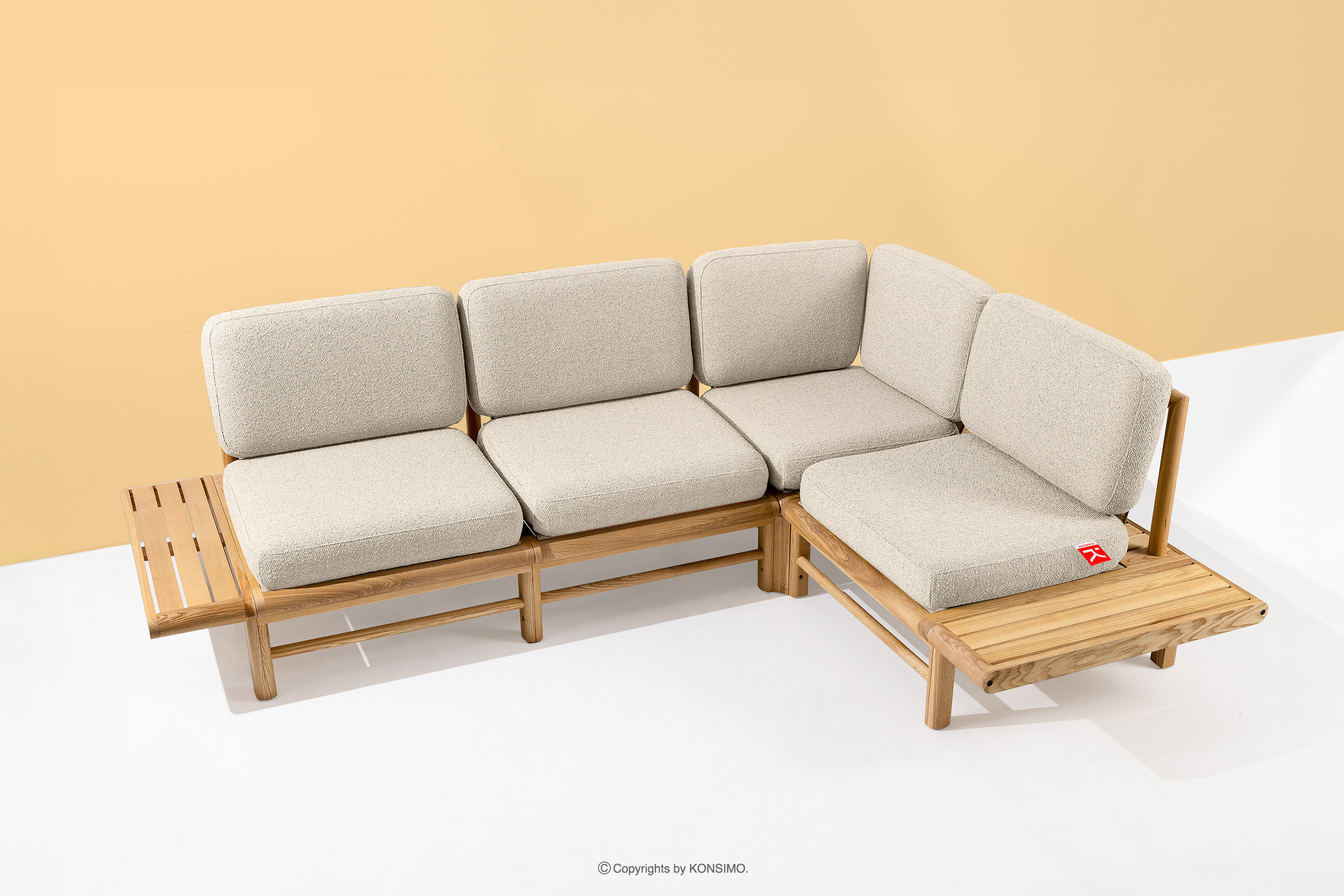 dla produktu Narożnik ogrodowy boho z litego drewna jesionowego kremowy prawy