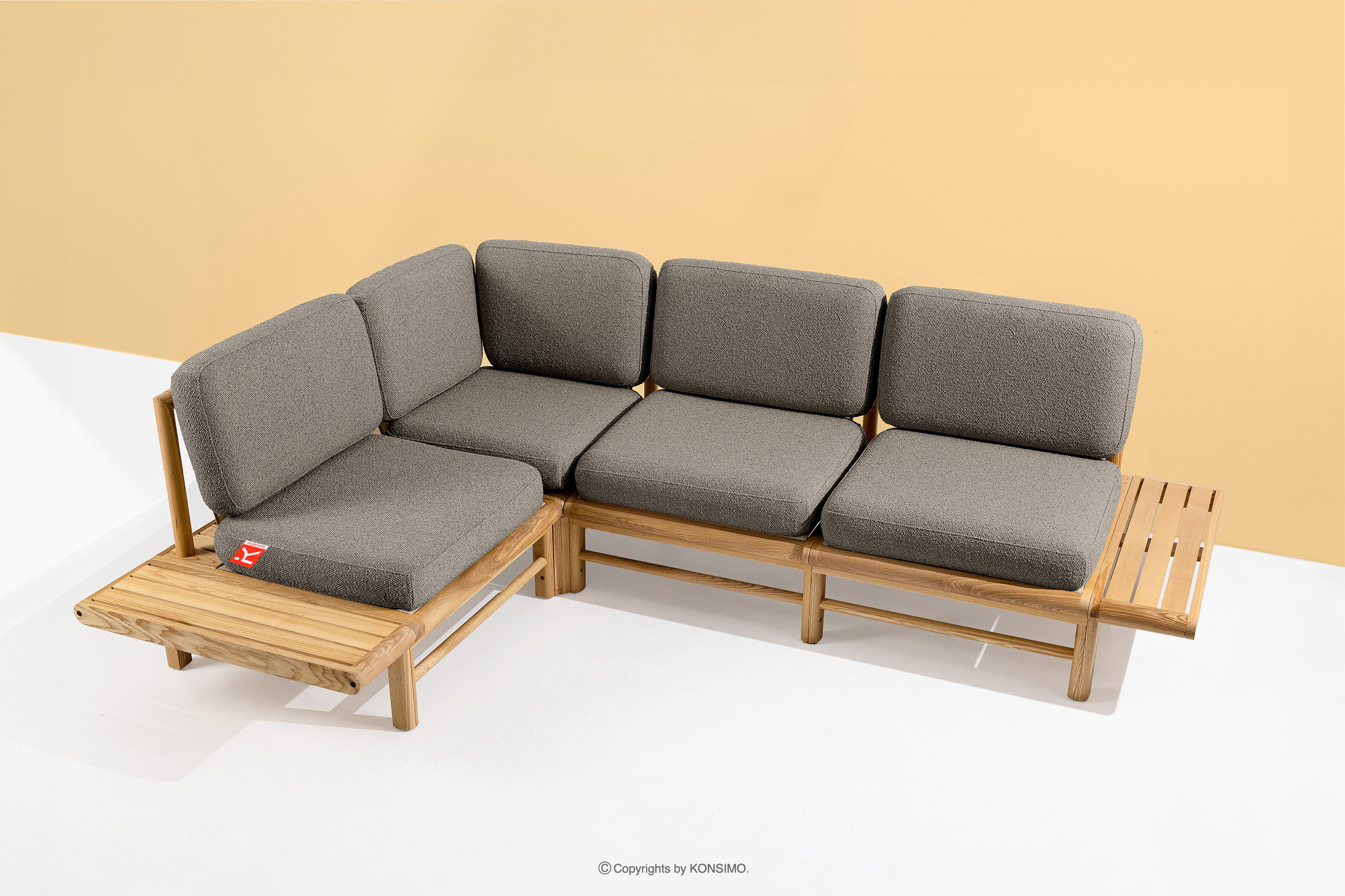 dla produktu Narożnik ogrodowy boho z litego drewna jesionowego szary lewy