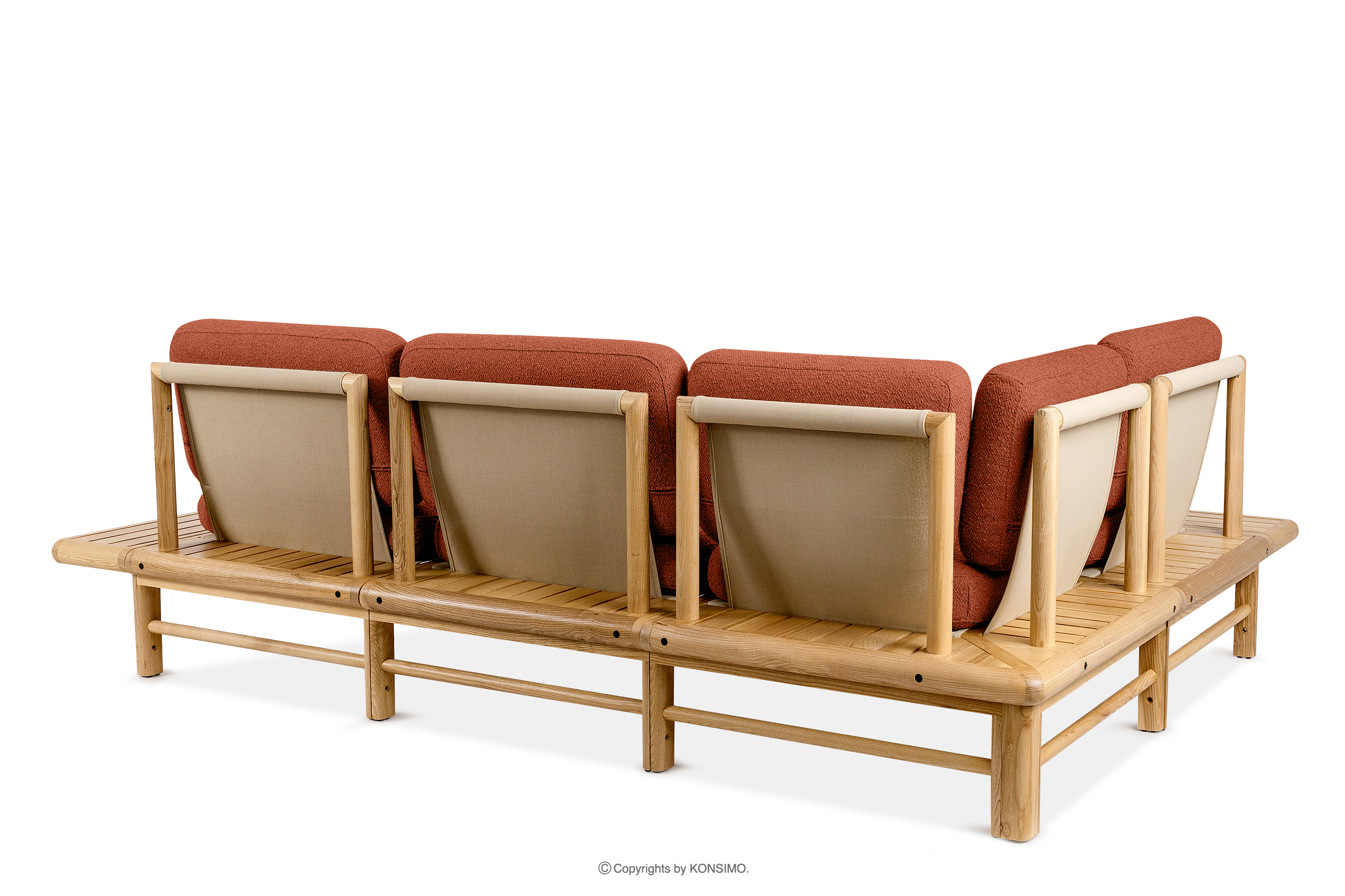 ATREDA zobacz całą kolekcję Narożnik ogrodowy boho z litego drewna jesionowego pomarańczowy lewy- kolor pomarańczowy/jesion naturalny