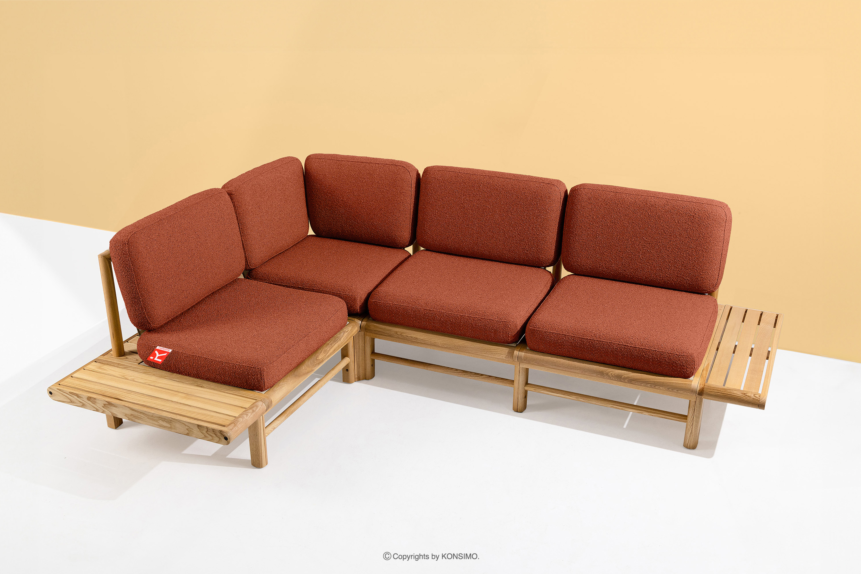 dla produktu Narożnik ogrodowy boho z litego drewna jesionowego pomarańczowy lewy