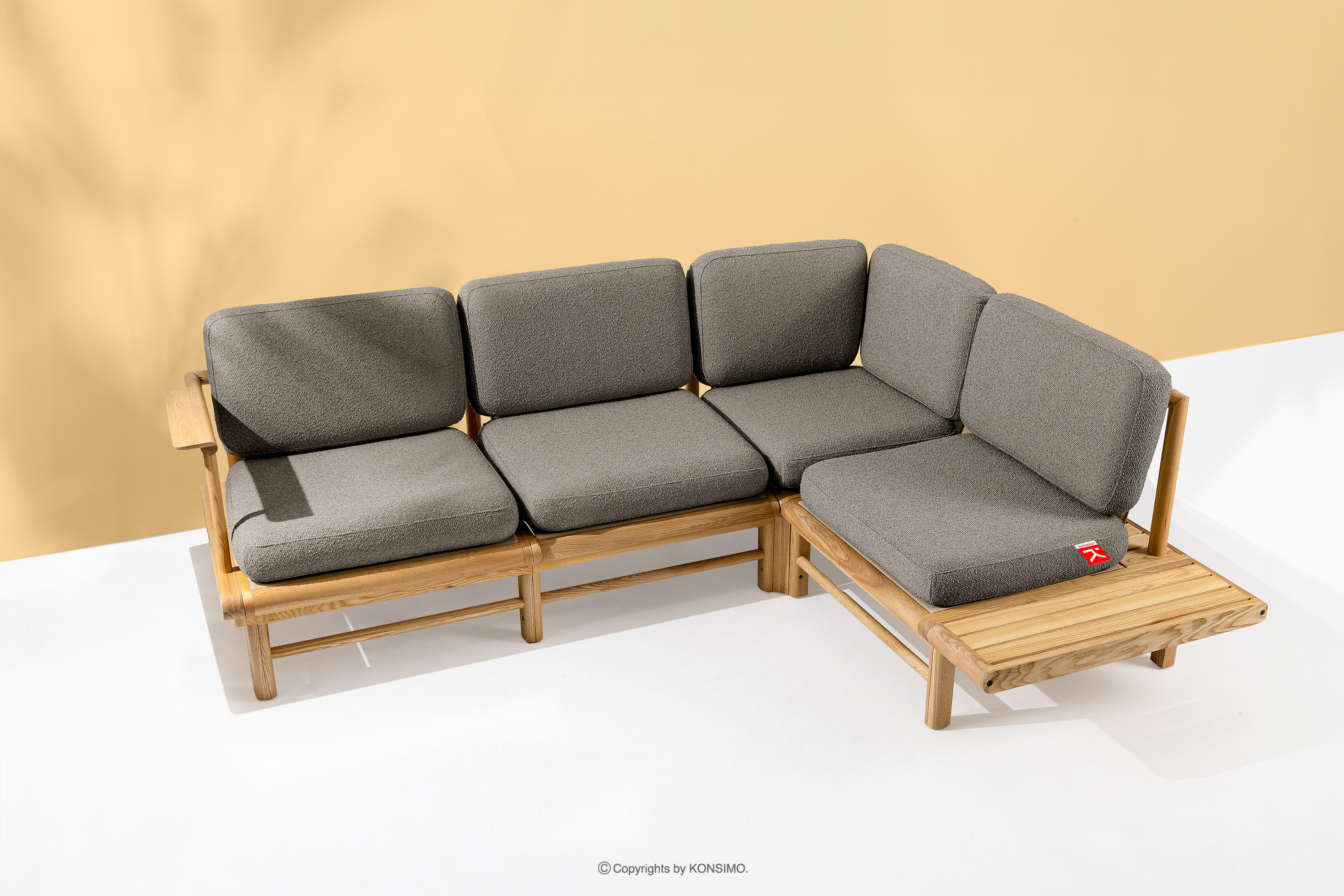 Drewniany narożnik ogrodowy w stylu boho prawy szary to wyjątkowy produkt, który ozdobi Twoją przestrzeń. Poduszki siedziskowe i oparciowe wypełnione są wysokiej jakości pianką PU, która zapewnia niezrównany komfort użytkowania. Pokrycie z tkaniny zawierającej 93% polipropylenu z recyklingu oraz 7% poliestru jest nie tylko przyjazne dla środowiska, ale także łatwe w pielęgnacji - wystarczy przetrzeć je wilgotną ściereczką.