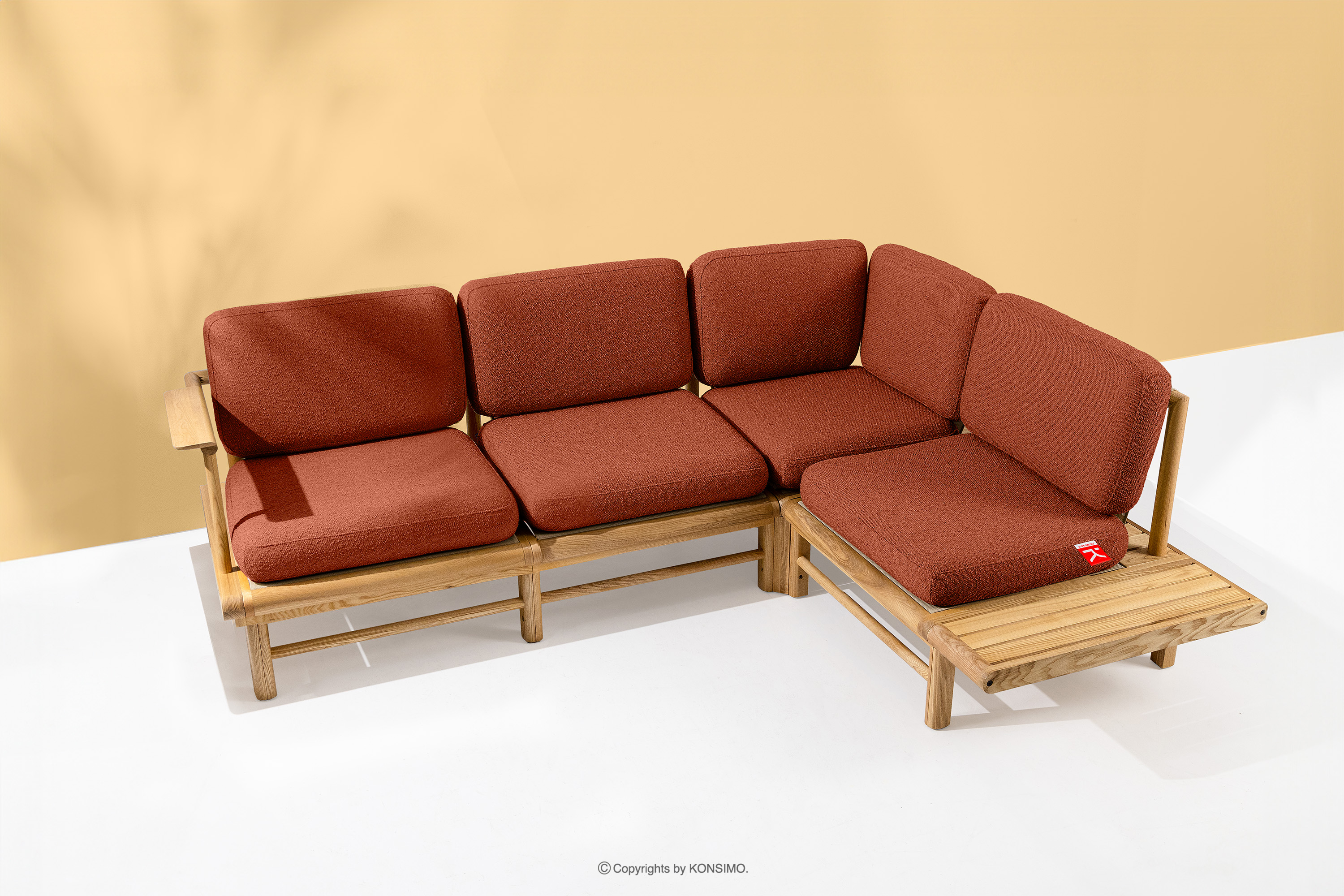Drewniany narożnik ogrodowy w stylu boho prawy pomarańczowy ATREDA - kolor pomarańczowy/jesion naturalny
