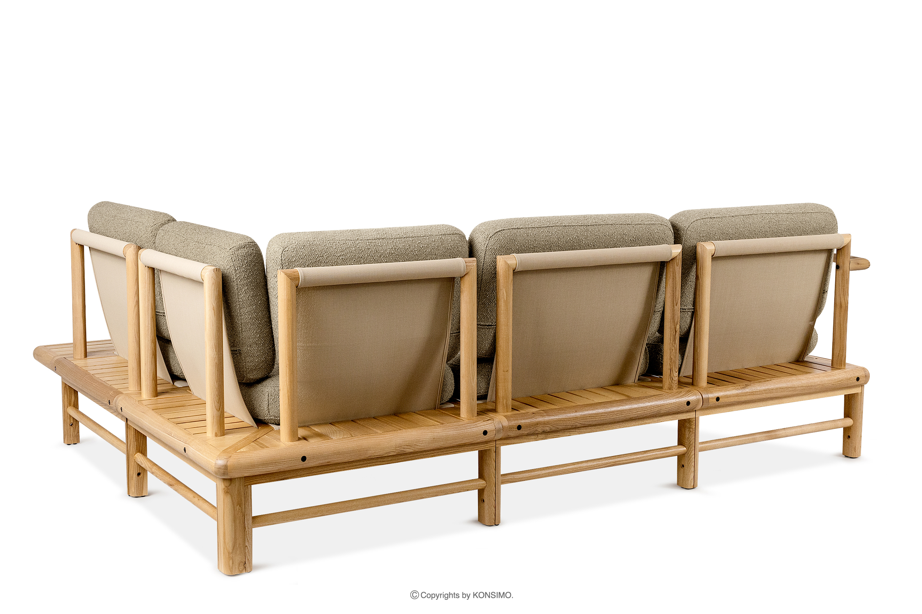 Drewniany narożnik ogrodowy w stylu boho prawy beżowy ATREDA - kolor beżowy/jesion naturalny
