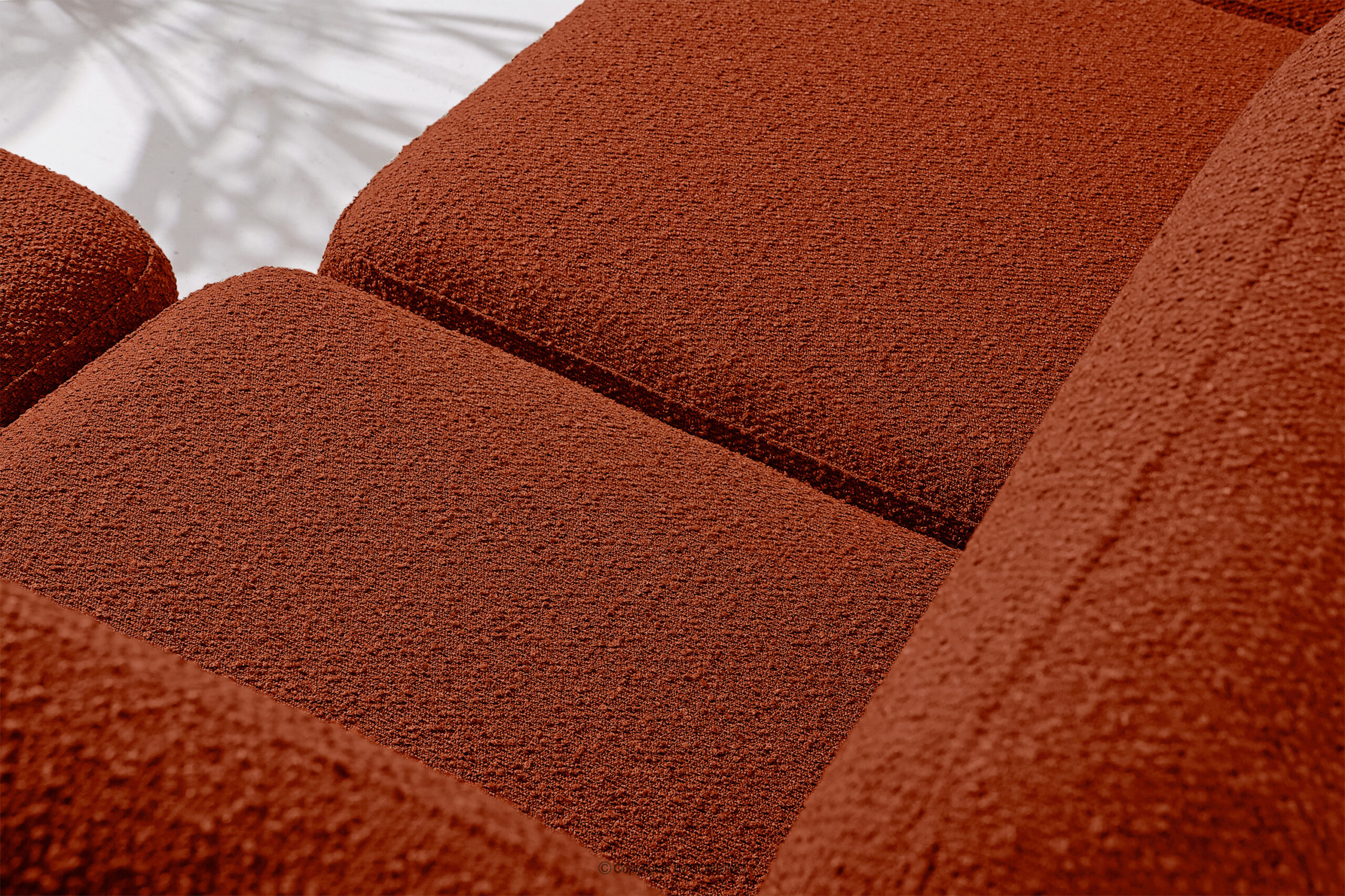 Narożnik ogrodowy boho prawy pomarańczowy/jesion naturalny prawy to wyjątkowy produkt, który ozdobi Twoją przestrzeń. Poduszki siedziskowe i oparciowe wypełnione są wysokiej jakości pianką PU, która zapewnia niezrównany komfort użytkowania. Pokrycie z tkaniny zawierającej 93% polipropylenu z recyklingu oraz 7% poliestru jest nie tylko przyjazne dla środowiska, ale także łatwe w pielęgnacji - wystarczy przetrzeć je wilgotną ściereczką.